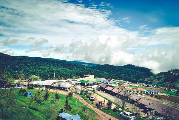 พอไปถึงพวกเราก็ตกลงจะไปเช่าเต้นท์กันที่วิสาหกิจชุมชน  มีคนจับจองเป็นประปรายบ้างแล้ว เจอวิวด้านบนแล้วใจมันสั่นระรัว คือ แบบ ดีงาม เวอร์วังอลังการมว๊ากกกก สวยสุดๆ