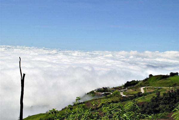 นอนไปก็หนาวไปหลับไม่ลงได้ยินเสียงฝนพร้อมโรงสีข้าวที่มาพร้อมกัน 4 คน 55 ผล๊อยหลับไปตื่นอีกทีได้ยินเสียงว่า เฮ้ยๆตื่นๆทะเลหมอกสวยมาก เท่านั้นละเด้งตัวออกมาจากที่นอนคว้านหากล้องอิแก่คู่ใจวิ่งออกมาทันที พอเช้ามาเจอบรรยากาศทะเลหมอกเท่านั้นแหละ ลืมบรรยากาศสุดแสนทรหดหนีตายเมื่อคืนไปเลย ฟ้าหลังฝนมันดีอย่างนี้นี่เอง ทะเลหมอกสุดลูกหูลูกตา คือนี่เมืองไทยชั่ยป๊ะ ไม่ฝัน มันสวยสุดๆ...