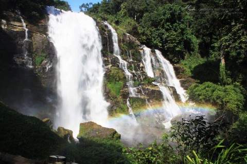 น้ำตกวชิรธาร น้ำตกสายรุ้ง ตั้งขาตั้งกล้องมะได้ ยืนถ่ายได้ก้อบุญอักโขแร้ว น้ำกระเซ็นมากมายย เกิดเป็นสายรุ้งแบบที่เห็น เมื่อแสงตกกระทบ