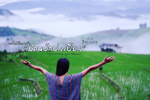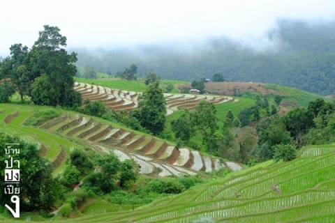 นาขั้นบันไดบนฟ้า "บ้านป่าปงเปียง" บ้านป่าปงเปียง หมู่บ้านเล็กๆที่ซ่อนตัวอยู่ในหลืบเขาริมดอยอินทนนท์ อำเภอแม่แจ่ม จังหวัดเชียงใหม่ ที่นี่แปรเปลี่ยนเป็นสีเขียวในช่วงฤดูฝน นาขั้นบันไดขึ้นชื่อว่าสวยที่สุดในเมืองไทย ผู้คนเป็นมิตร หมอกลอยเอื่อย น้ำเย็นเจี๊ยบ มีเพียงแสงเทียนในช่วงเวลากลางคืน มีโฮมสเตย์ไว้คอยบริการนักท่องเที่ยวคืนละ 500 บาทต่อคนรวมอาหารเย็นและเช้า อากาศที่บริสุทธิ์กับบรรยากาศขั้นเทพเต็มเปี่ยม รอให้ทุกๆคนมาสัมผัส แล้วจะได้รู้สึกแบบเดียวกัน #ฉันตามใจไป
