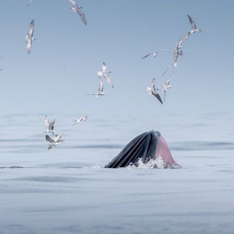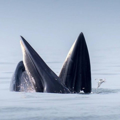 Q : ในรูปนี้มีสัตว์กี่ชนิด . . . . A : มีทั้งหมด 4 ชนิด ปลากระตัก มากินแพลงตอน วาฬ มากินปลากระตัก นกนางนวล มากินวาฬ #thetrippacker #Lumixgx8 #bryde #whale #thailand
