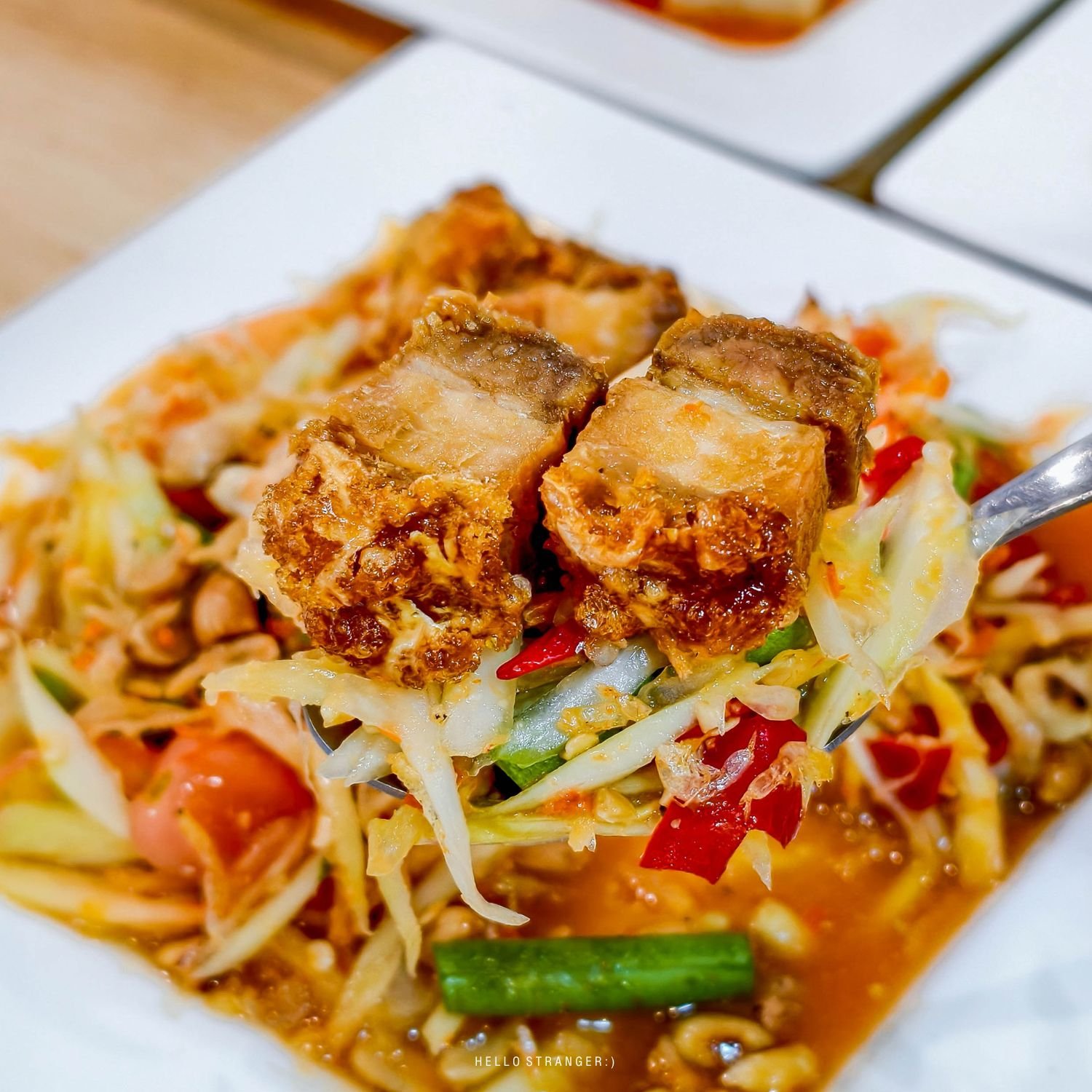 •ตำไทยหมูกรอบ เมนูที่มาแล้วต้องสั่ง หมูกรอบคือเดอะเบส กรอบมาก ทานคู่กับตำไทยอร่อยมาก