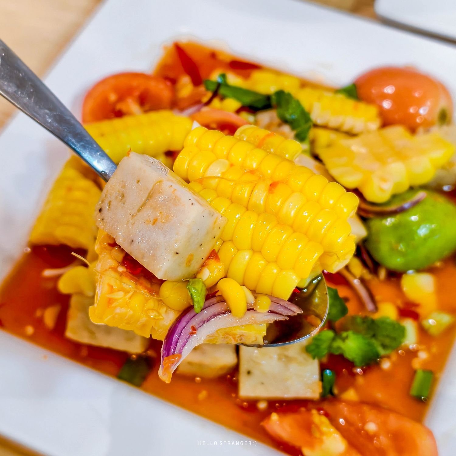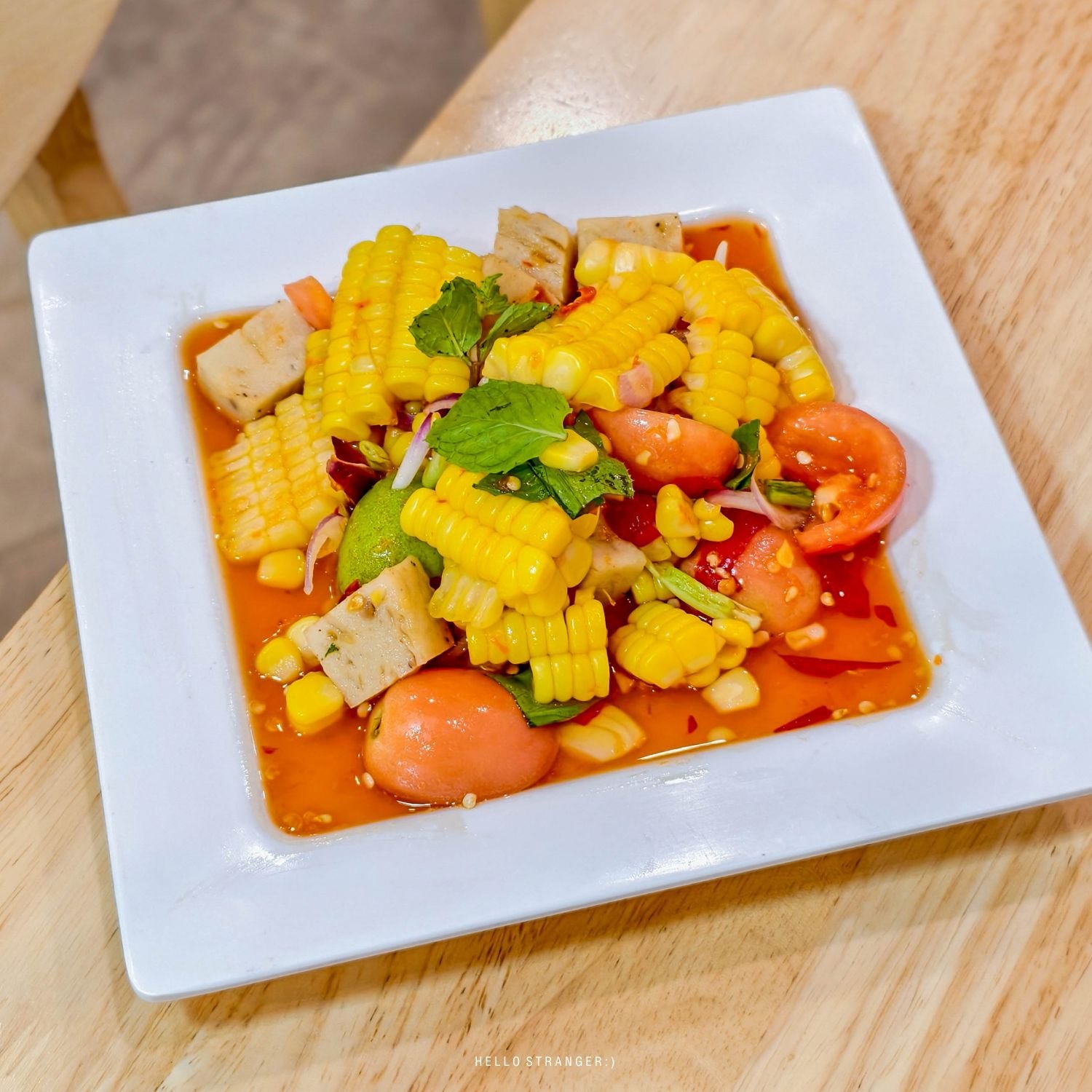 •ตำข้าวโพดหมูยอ เป็นตำข้าวโพดที่ทานเพลินมาก ข้าวโพดหวานๆ น้ำยำเปรี้ยวเค็มเผ็ด อร่อยครบรส หมูยอเด็ด