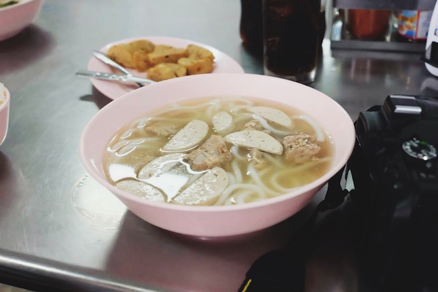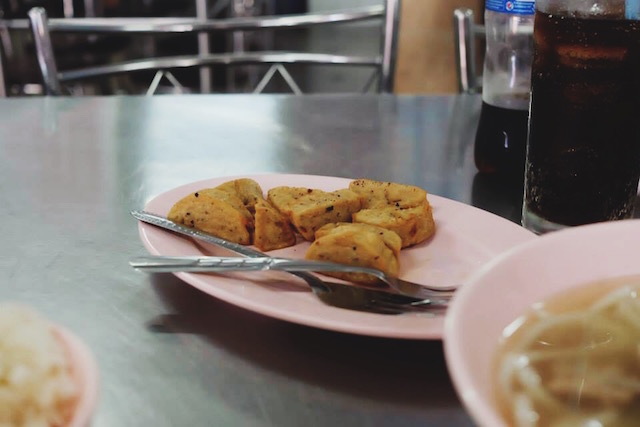 เมนูที่สั่งคือ 'ข้าวเปียกเส้น' และ 'หมูยอทอด'