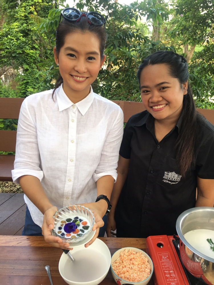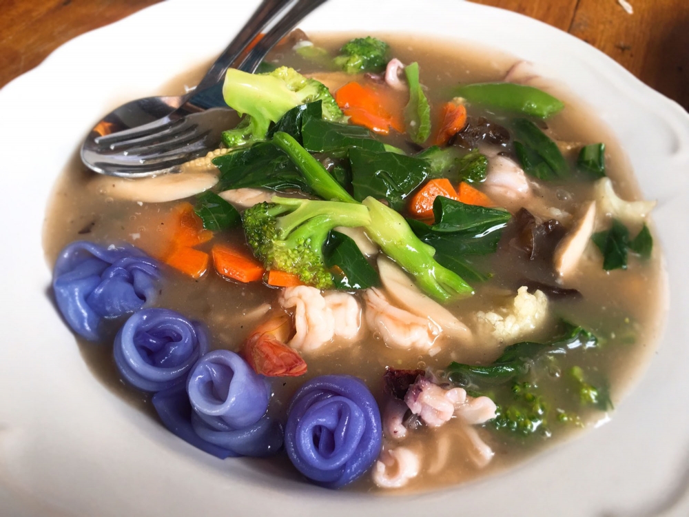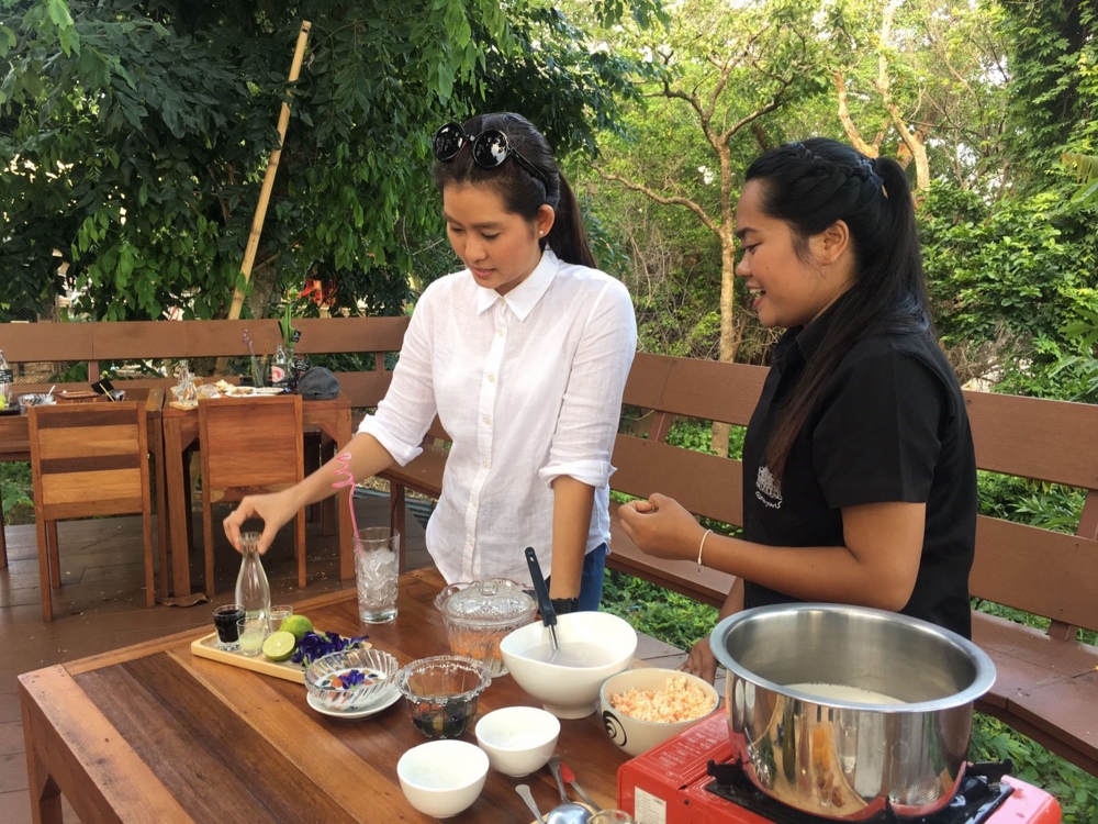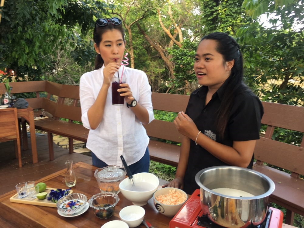 มาที่นี่ทั้งที โบว์ก็ไม่พลาดที่จะชิมอาหารเมนูสมุนไพรค่ะ อย่างราดหน้าเส้นอัญชัน เส้นสีสวยน่ากิน กับน้ำสมุนไพรหอมอร่อย แถมสุขภาพดี สดชื่น พร้อมเดินทางได้อีกหลายที่เลยค่ะ