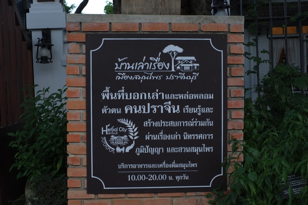ไปต่อกันที่ “บ้านเล่าเรื่อง เมืองสมุนไพรปราจีนบุรี” บ้านเก่าโบราณ ร่มรื่นไปด้วยพรรณไม้ต่างๆ เปิดบ้านเพื่อให้คนทั่วไปได้เรียนรู้เรื่องราวของสมุนไพรไทย ผ่านเรื่องเล่า นิทรรศการภูมิปัญญา และสวนสมุนไพร และยังเป็นแหล่งนัดพบ ทำกิจกรรมสนุกๆ ร่วมกัน