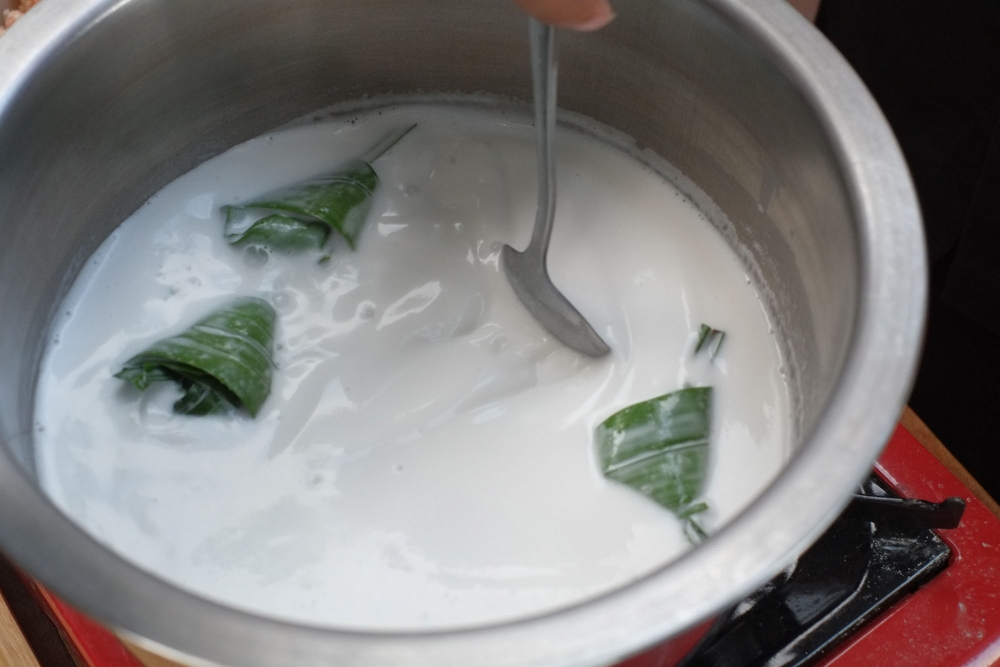 เสร็จแล้วก็เอาสาคูที่เราปั้นไว้ ลงไปต้มที่น้ำเดือดค่ะ