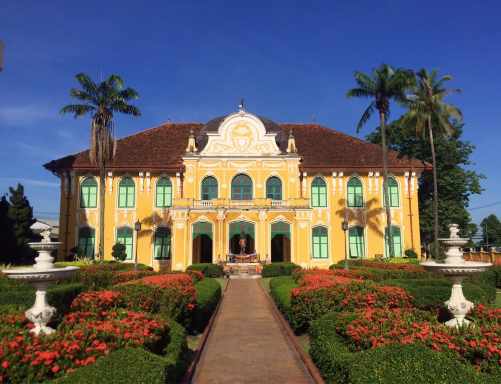 เรามาเที่ยวกันต่อที่ “โรงพยาบาลเจ้าพระยาอภัยภูเบศร” โบว์เชื่อว่าหลายคนรู้จักที่นี่เป็นอย่างดีก็เพราะตัวอาคารที่มีสีเหลืองสวยสะดุดตา มีอายุถึง 108 ปี และโดดเด่นด้วนลักษณะสถาปัตยกรรมแบบบาร็อค ก่อตั้งโดยเจ้าพระยาอภัยภูเบศร เพื่อถวายแด่พระบาทสมเด็จพระจุลจอมเกล้าเจ้าอยู่หัวรัชกาลที่ 5