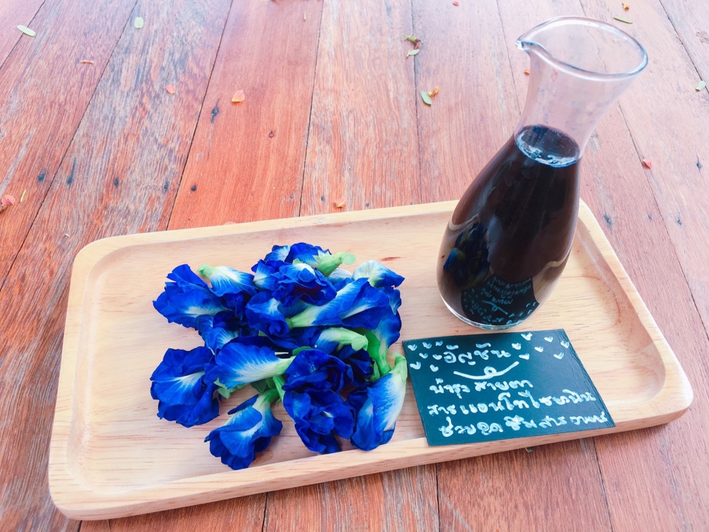 อย่างน้ำอัญชันมะนาวโซดา ส่วนประกอบก็คือ น้ำอัญชันเข้มข้น มะนาว และโซดา
