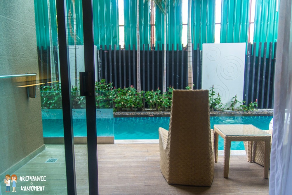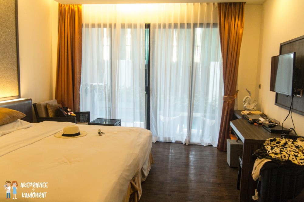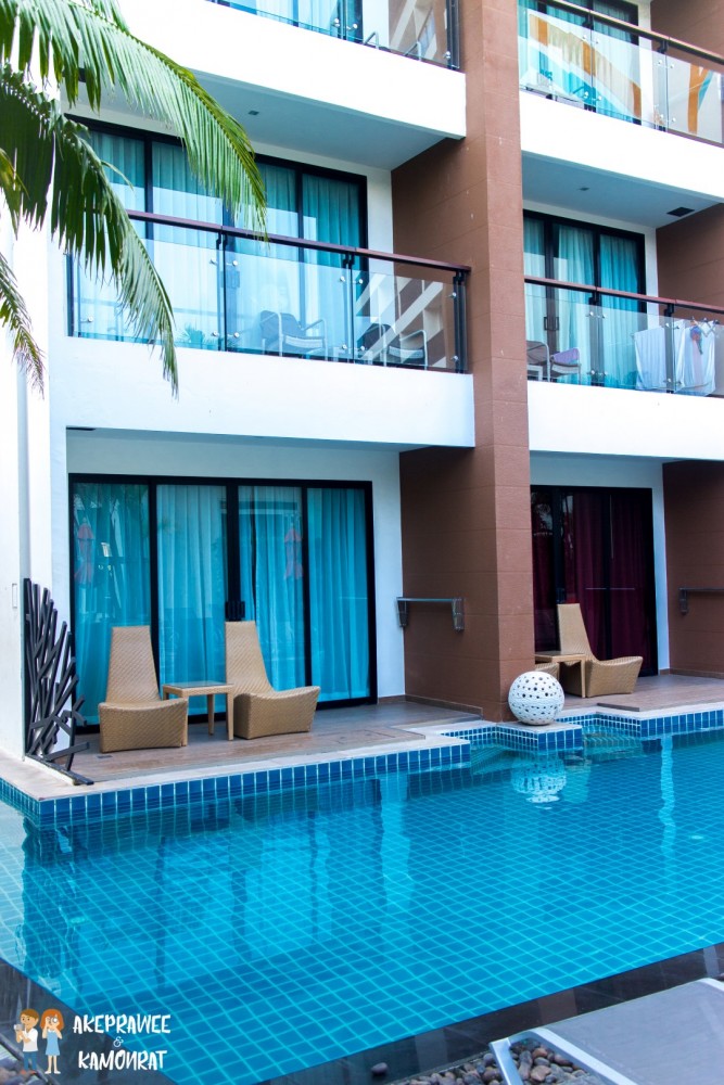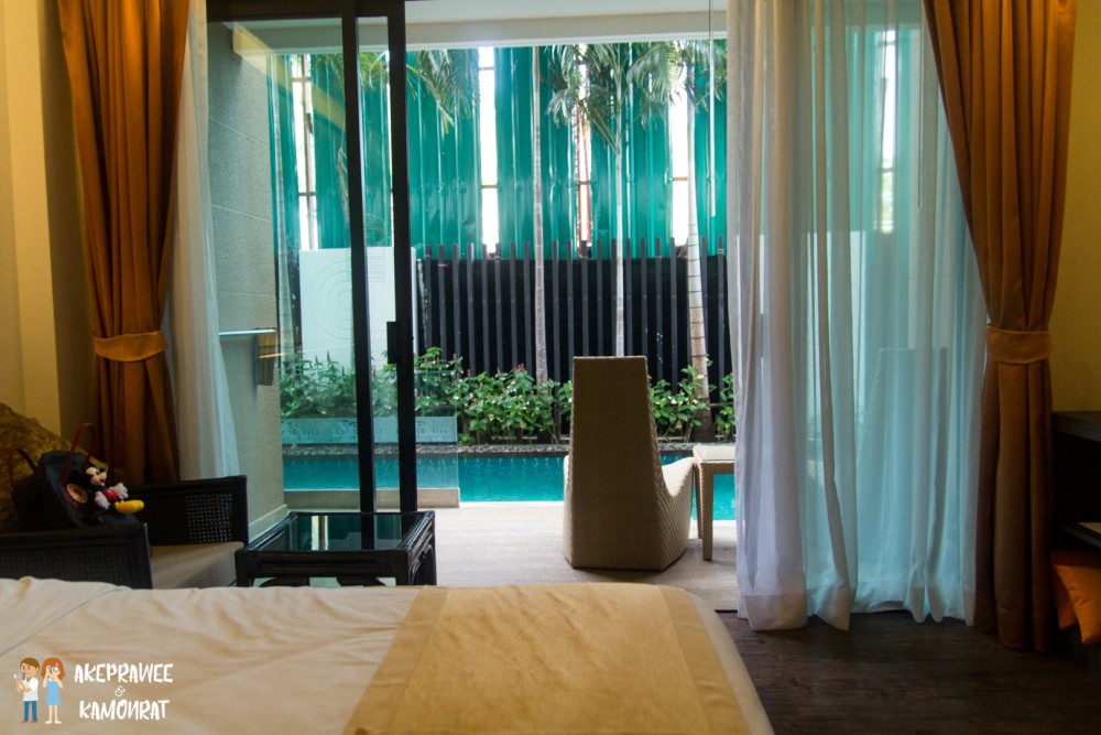 เมื่อเช็คอินเรียบร้อยแล้ว พนักงานจะพาเราไปยังห้องพักค่ะ ห้องที่ส้มได้วันนี้อยู่ด้านหลัง ตึก 1 ค่ะ เลขที่ออก 3103  เป็นห้อง pool access ค่ะ ค่อนข้างเป็นส่วนตัว โชคดีไปที่ส้มได้ฝั่งนี้ เพราะถ้าเป็นอีกฝั่งนึงจะติดกับสระใหญ่และห้องอาหารของโรงแรม  ฝั่งที่ส้มได้ เกือบเป็น private pool แล้ว เพราะไม่มีใครมาเล่นเลย ห้องทั้งแถบเหมือนมีแค่ห้องส้มห้องเดียว
