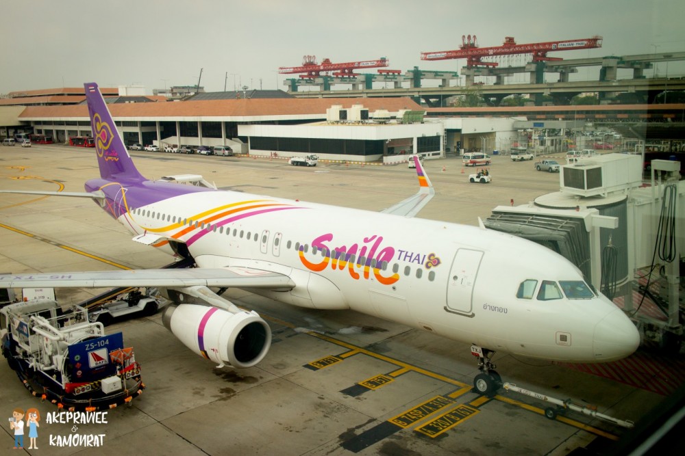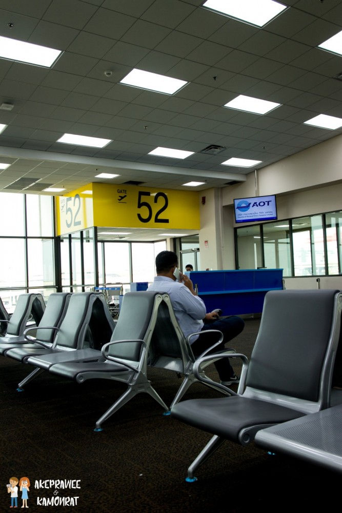 เริ่มต้นทริปของส้ม ออกเดินทางจาก บขส.ใหม่ โคราช  ประมาณ ตี 2 ค่ะ  ใช้เวลาเดินทางประมาณ 3 ชม. ตี 5 นิดๆ ก็มาลงที่หน้าดอนเมือง เดินเข้ามาในอาคาร 2 บินภายในประเทศได้เลย ไฟลท์บินเราคือ 9.25 แต่ไม่อยากพลาดอะไรค่ะ มารอก่อนจะดีกว่า เรามารอเค้า ดีกว่าให้เค้ารอเราเนอะ  มาถึงสนามบิน คนยังไม่เยอะมากค่ะ นั่งคุย นั่งเล่น กัน 2 คน รอเวลา ประมาณ  7.25 น. เค้าน์เตอร์เช็คอิน ก็เปิดให้บริการ อ่อ ๆๆ ส้มเช็คอินมาจากบ้านแล้วนะคะ ปริ้นท์เอกสารมาเรียบร้อย ติดต่อเค้าน์เตอร์เพื่อโหลดกระเป๋า 1 ใบ Thaismile ให้กระเป๋าฟรี 20 กิโล นะคะ แต่ไปกัน 2 คน ส้มใช้กระเป๋าแค่ใบเดียวก็พอค่ะ ให้คุณสามีจัดการโหลดกระเป๋า เราก็มายืนรอดูค่ะ ว่ากระเป๋าเราผ่านเรียบร้อยมั้ย ยืนรอประมาณ 5 นาทีก็เดินเข้าเกทได้ค่ะ ผ่านเรียบร้อยดี  ก็เดินเข้ามาในเกทได้เลย หาซื้อขนมรองท้องนิดหน่อย แล้วเดินไปรอที่เกทเลยค่ะ เดินไกลพอสมควรเลย เลขเกทที่ออกคือ  52  นั่งเล่นสักพัก ก็เรียกขึ้นเครื่องค่ะ