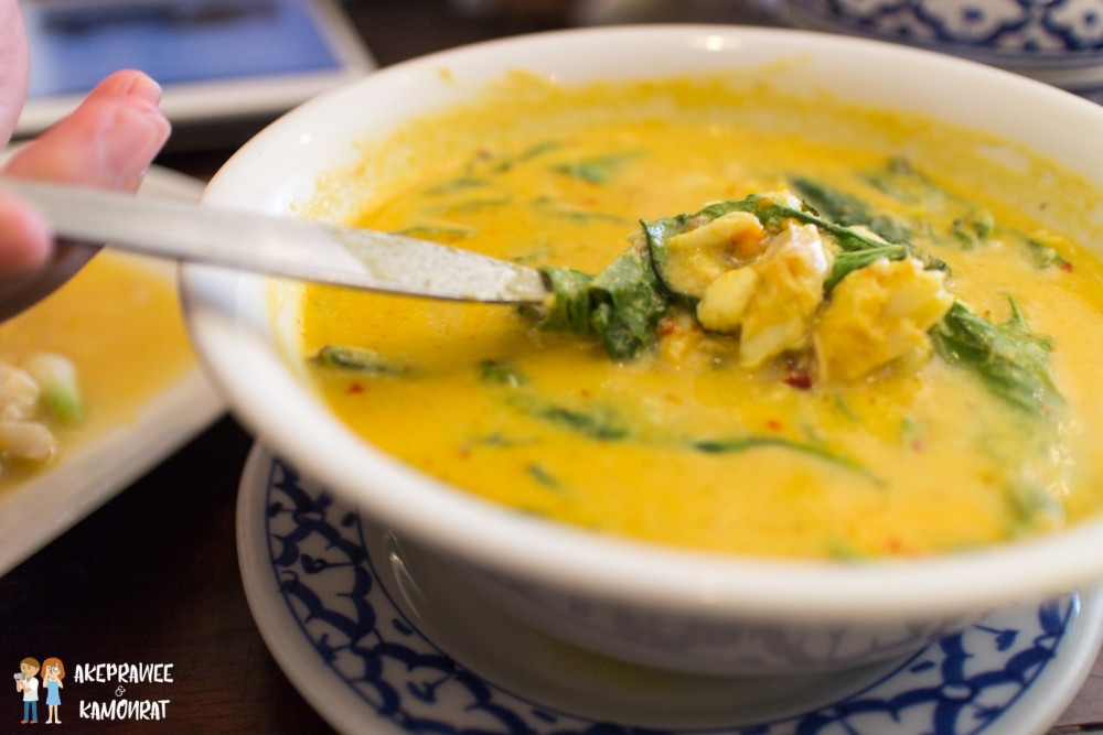 ออกจากร้าน Eleven Two & Co แล้ว เป้าหมายสุดท้ายของเราวันนี้คือ มาชิมแกงปูใบชะพลูที่ร้านวันจันทร์ เดินออกจากร้านไปอีก 1 แยกค่ะ ก็จะเจอร้านวันจันทร์ เป็นร้านอาหารพื้นเมืองภูเก็ต ตกแต่งร้านเน้นโทนย้อนยุค ด้วยการเอาของเก่าพวกวิทยุ นาฬิกามาตกแต่งค่ะ คนไม่เยอะตอนที่ส้มไปค่ะ ชอบบ เมนูที่สั่งคือ แกงปูใบชะพลู หมูฮ้อง เนื้อปูผัดมะนาว ให้ผ่านเต็มที่ที่ 2 เมนูแรกค่ะ เนื้อปูผัดมะนาว ส้มเฉยๆ ข้าวเปล่าจะเสิร์ฟมาในโถข้าว ซึ่งน่ารักมากก ไปเหอะๆๆๆ ไปกินข้าวกันเนอะ