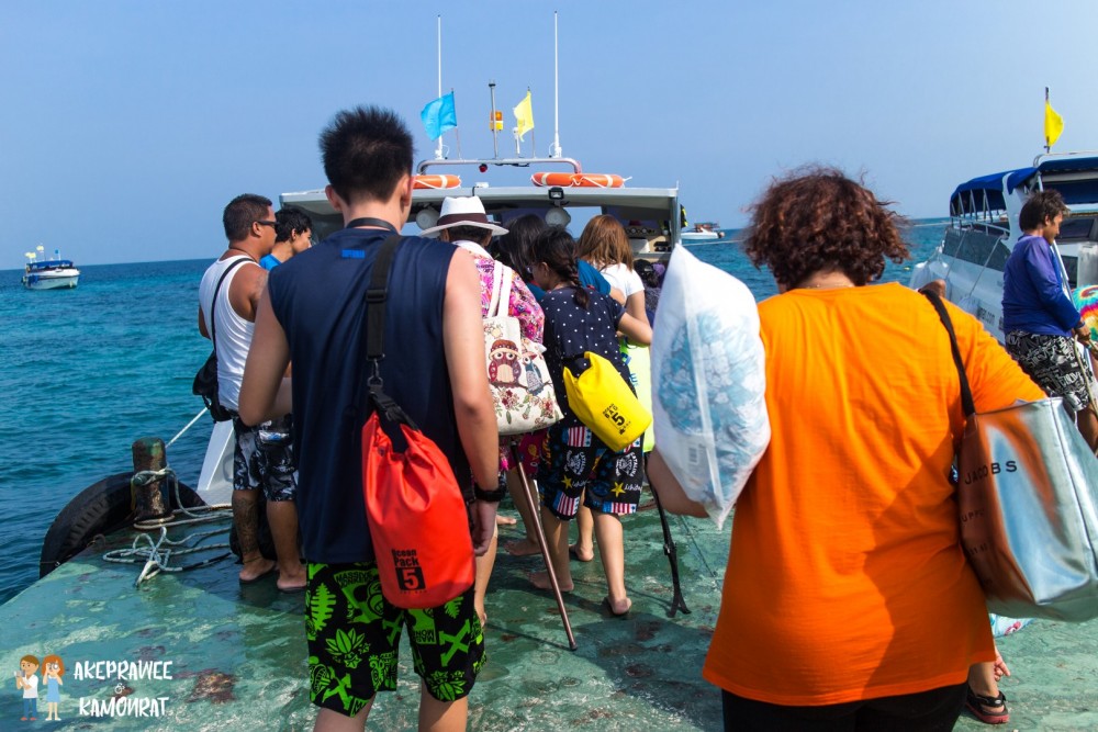 สักพักเรือก็พร้อมออกเดินทางค่ะ ทางไกด์แจ้งว่าเป็นเรือลำใหญ่ นั่งได้ 40-50 คนนี่แหละค่ะ ส้มไม่แน่ใจ เพราะฉะนั้นวันนี้ที่นั่งเหลือๆค่ะ เพราะวันนี้นักท่องเที่ยว 38 คนค่ะ ก่อนลงเรือไกด์จะให้ถอดรองเท้านะคะ รวมใส่ถุงไว้ คืนให้ตอนถึงเกาะ ทั้งขาไป-กลับนะคะ