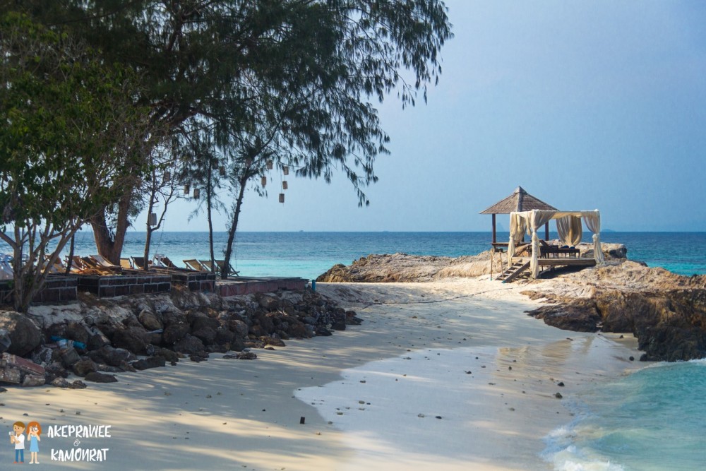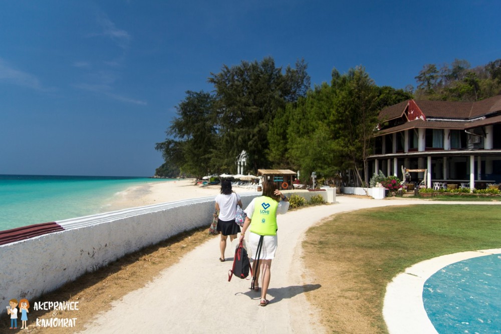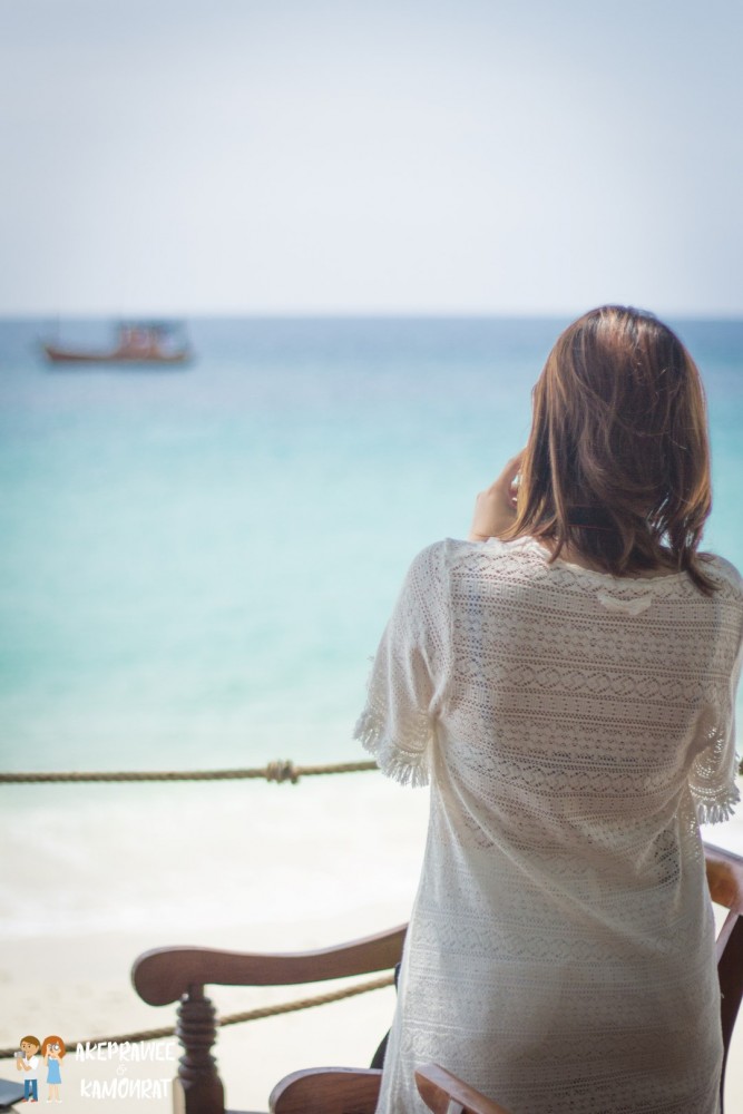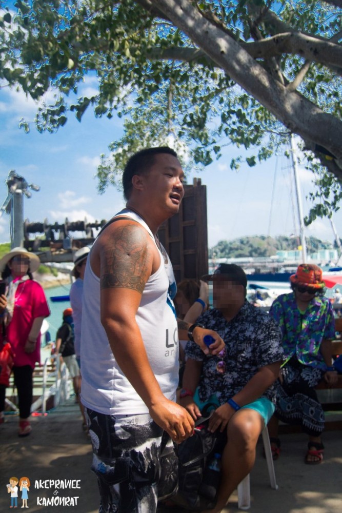 ส้มกับคุณสามีเลือกขึ้นเกาะค่ะ เพราะส้มว่ายน้ำไม่เป็น และไม่คิดจะดำน้ำอยู่แล้ว แค่อยากมานั่งผ่อนคลาย มาเที่ยวเกาะเท่านั้น ที่ขึ้นเกาะเลย มีไม่กี่คนค่ะ ขึ้นเกาะมาแล้ว ก็นั่งเล่นสักพัก พนักงานของเลิฟ อันดามัน ก็พร้อมบริการเครื่องดื่มค่ะ ตั้งแต่ลงเรือมา คือชอบที่นี่มาก ทะเลสวย ฟ้าใส แต่วันนี้ไม่ค่อยมีเมฆค่ะ แดดแรงใช้ได้เลย  ครีมกันแดดก็เอาไม่อยู่ แต่มาเที่ยวทะเลเนอะ ถ้ากลัวดำ ก็คงไม่ใช่เรื่อง เกาะไม้ท่อน มีผู้ให้บริการหลายบริษัทค่ะ ของเลิฟอันดามัน จะอยู่ด้านในสุด มีที่นั่งในร่ม นั่งพักได้สบายๆ ตอนที่ส้มไป ทางปลายๆ หาด จะมีปรับปรุง กั้นป้ายไว้ เลยไม่ได้เดินไป แค่เดินๆ เล่น  ใกล้ๆ แถวตจุดที่จัดไว้ ที่นี่มีสระว่ายน้ำด้วยนะคะ เผื่อใครไม่อยากลงทะเล ก็มาว่ายน้ำในสระได้
