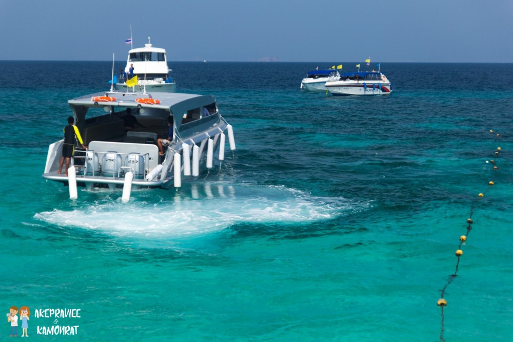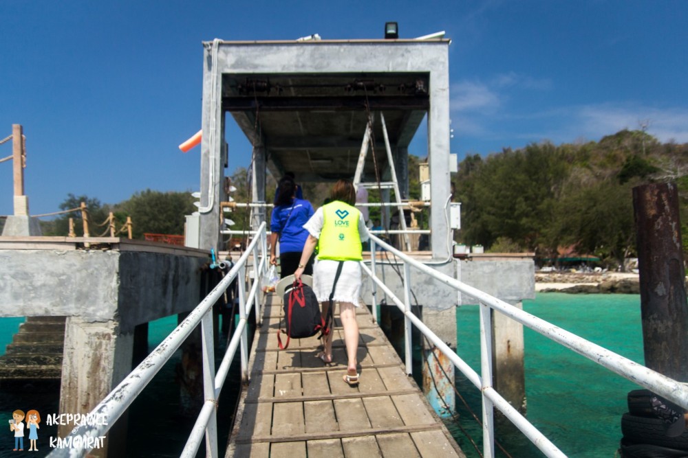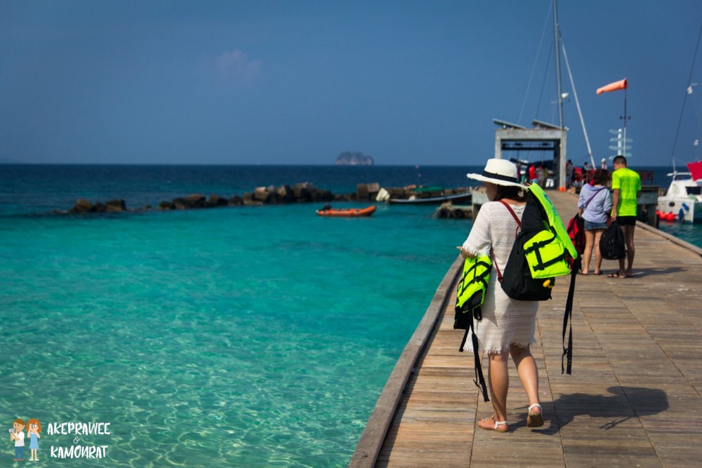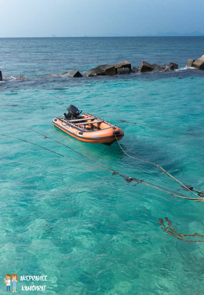 ใช้เวลาเดินทางไม่นานค่ะ ประมาณ 10 นาที ก็ถึงเกาะไม้ท่อนค่ะ เห็นน้ำทะเลสวยๆ ใสๆ มาแต่ไกล เสียดายที่เราไม่ได้เห็นน้องโลมา เหมือนบางทริปที่ได้มาเจอ  ก่อนลงเรือไกด์จะถามก่อนค่ะ ว่าใครจะไปดำน้ำ หรือจะขึ้นเกาะเลย ถ้าใครขึ้นเกาะเลย ก็สามารถขึ้นไปพักผ่อนได้เลยค่ะ จะจอดให้ที่ท่าเรือ ส่วนใครที่ดำน้ำ ไกด์จะพาไปดำน้ำที่จุดดำน้ำค่ะ