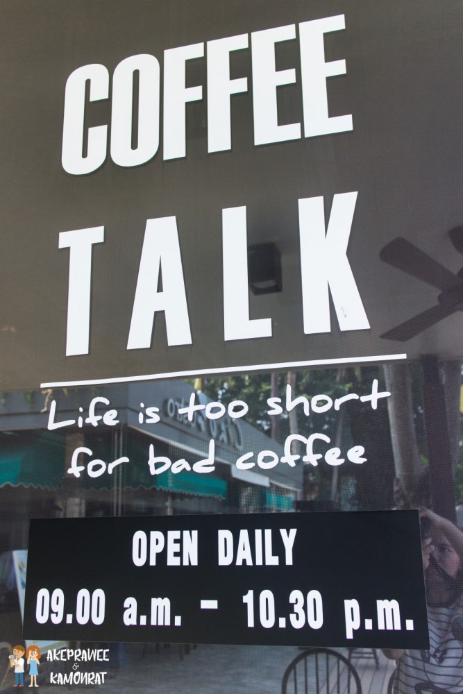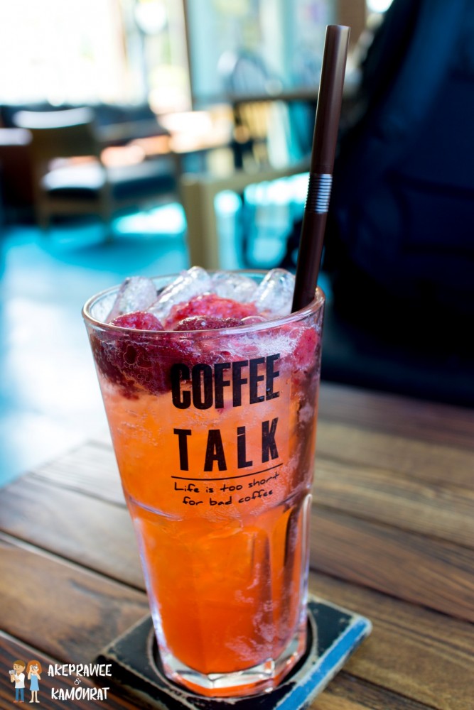 มาถึงวันสุดท้ายของทริปนี้แล้ว แอบเศร้านะ ยังไม่อยากกลับเล้ยย วันนี้ส้มบินไฟลท์สุดท้ายเลยค่ะ คือ 21.35 น. เพราะฉะนั้นก็ยังมีเวลาเที่ยวได้เกือบทั้งวันแหละเนาะ วันนี้แพลนคือเที่ยววัดและเดินเที่ยวในย่านเมืองเก่าภูเก็ตค่ะ หลังจากจัดการมื้อเช้าเรียบร้อยแล้ว ก็ทำการเช็คเอ้าท์ค่ะ แล้วก็ออกเดินทางกันไปที่จุดหมายแรกเลย คือที่ ร้านกาแฟ Coffee Talk ค่ะ อยู่ที่หาดกะรน ร้านมองเห็นทะเล เป็นร้านกาแฟที่น่านั่งอีกหนึ่งร้านของภูเก็ตค่ะ อาจจะเช้ามาก ส้มไปยังไม่มีลูกค้าเลย พนักงานบริการดีค่ะ เครื่องดื่มอร่อยมากกก ส้มสั่ง Strawberry Delight ค่ะ ของคุณสามีเป็น Ice Chocolate ค่ะ ขนมเป็นบราวนี่ค่ะ