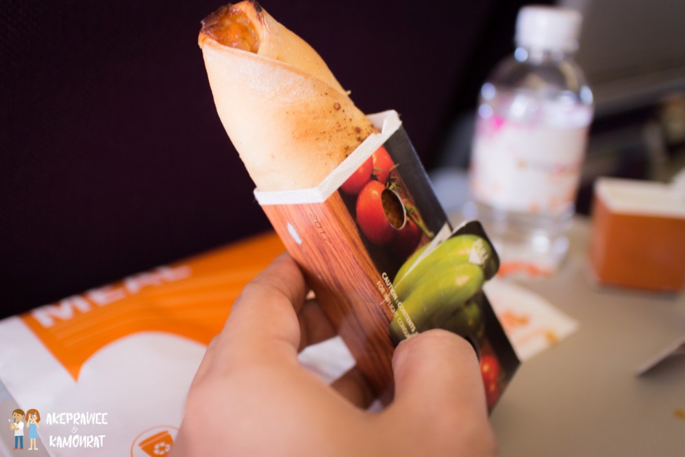 เมื่อเครื่องรักษาระดับได้แล้ว แอร์โฮสเตสก็เริ่มบริการอาหารว่างค่ะ ไม่รู้เมนูแต่อร่อยค่ะ ในถุงที่ให้มาจะมีของว่าง น้ำเปล่า 1 ขวดค่ะ และอีกสักครู่จะมีบริการเครื่องดื่ม พวกน้ำผลไม้ น้ำอัดลมค่ะ ขอน้ำส้มไป 2 แก้ว ชื่นใจ ^^