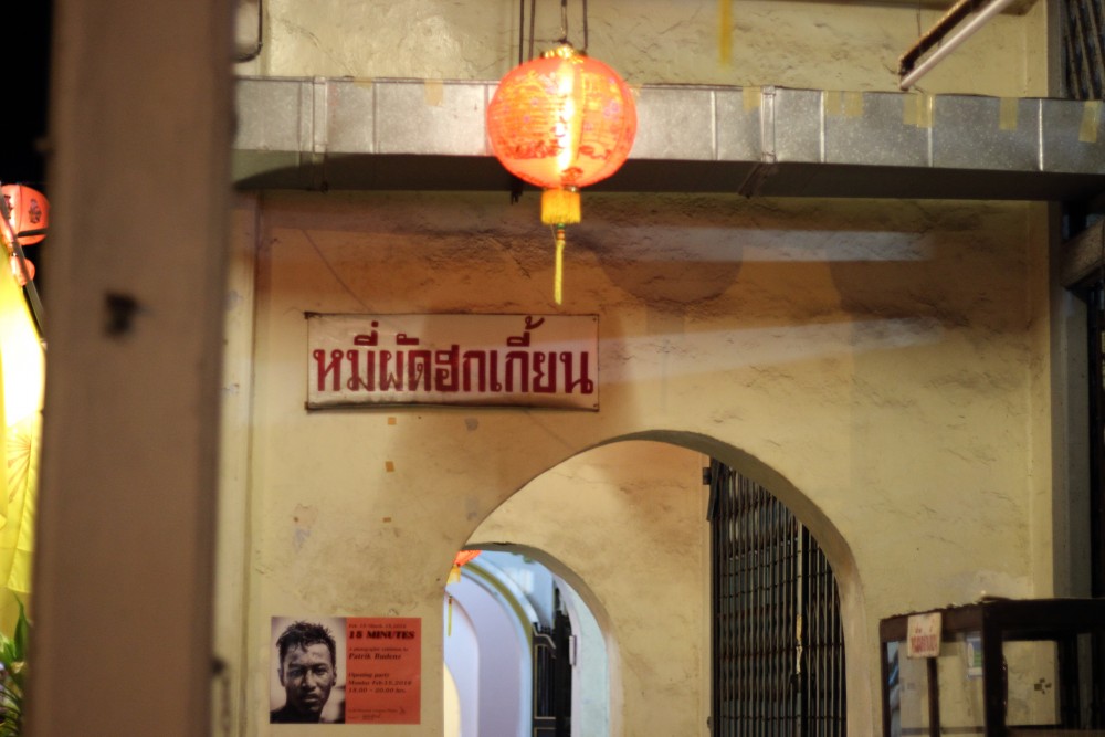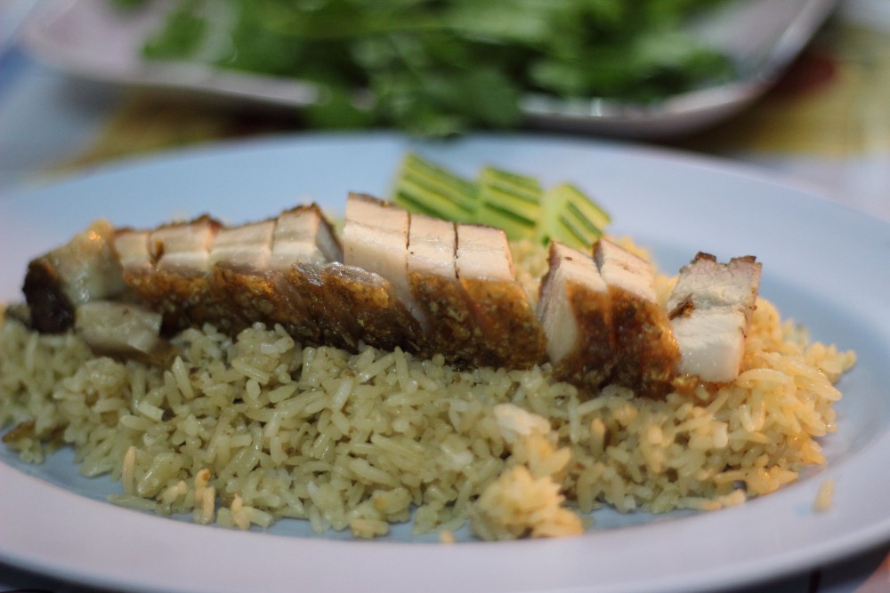 ภาพบรรยากาศเมืองภูเก็ตยามค่ำคืนเดินมาสักพัก เกิดหิวขึ้นมา พอดีไปเจอร้านหมูกรอบอยู่ตรงหัวมุมซอยพอดี ตรงถนนพังงา จึงแวะกินเติมพลังสักหน่อย แต่ข้าวหมูกรอบจะต่างจากที่อื่น (โดยเฉพาะคนกรุงเทพอย่างผม) คือจะไม่มีน้ำซอสราดมาให้ แต่จะเป็นซีอิ๊วดำ ซีอิ๊วหวานให้เติม และตัวข้าวจะมีสีดำและมีกลิ่นหอมเหมือนข้าวมัน ซึ่งแตกต่างจากของที่อื่นๆที่จะเป็นข้าวสวยธรรมดา