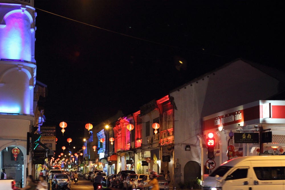 กินข้าวหมูกรอบเสร็จแล้ว ก็เดิมชมเมืองภูเก็ตกันต่อสิ่งที่เห็นระหว่างเดินชมเมืองภูเก็จ นั้นคือ บ้านเรือนต่างๆจะประดับด้วยไฟ ซึ่งเปลี่ยนสีไปมาสลับกันไป ทำให้เมืองภูเก็ตเป็นเมืองที่น่ามองน่าชมมากยิ่งขึ้น