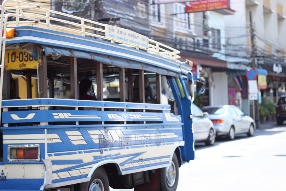 จากนั้นเราก็เดินออกมาจากสนามบินภูเก็ต ออกมาเลี้ยวซ้ายเดินมาตามทางเท้าเราก็จะเจอรถบัส หรือรถตู้ ที่จะรับส่งระหว่าง สนามบินภูเก็ตกับตัวเมือง (ไม่มีภาพตอนขึ้นรถตู้นะครับ เพราะรถกำลังจะออกพอดี ^^)