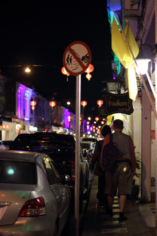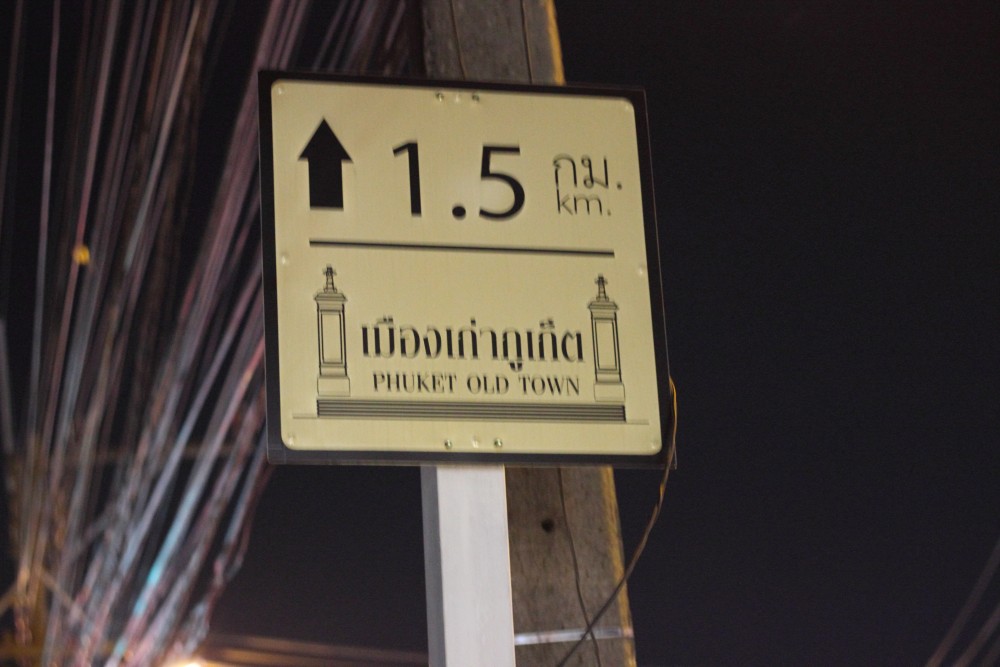 เดินชมเมืองจนเพลิน ความห่างไกล และแสงสีเริ่มหายไป จนมาเจอป้ายว่า "1.5 กม. เมืองเก่าภูเก็ต" แสดงว่าเดินหลงครับ..... หลงแสงสีจนหลงทาง ต้องเดินกลับอีก 1.5 กม. T^T
