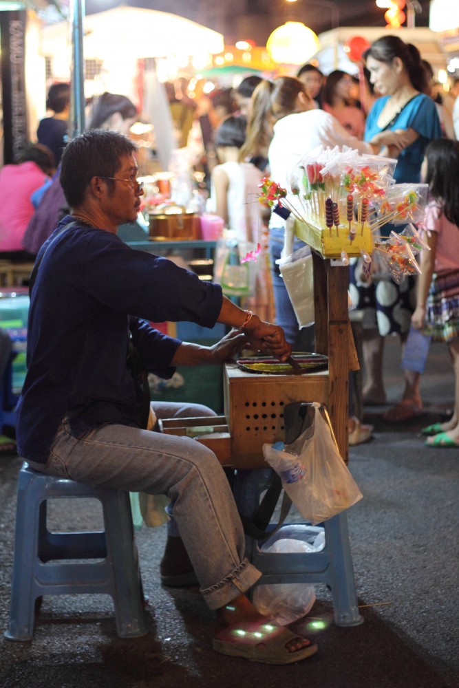 หลังจากที่เที่ยวชมวิวทิวทัศน์ของหาดราไวย์และแหลมพรหมเทพเสร็จแล้ว จึงขับมอเตอร์ไซต์กลับที่พัก และก็ได้เดินเที่ยวชมเมืองภูเก็ตยามค่ำคืนกันต่อ