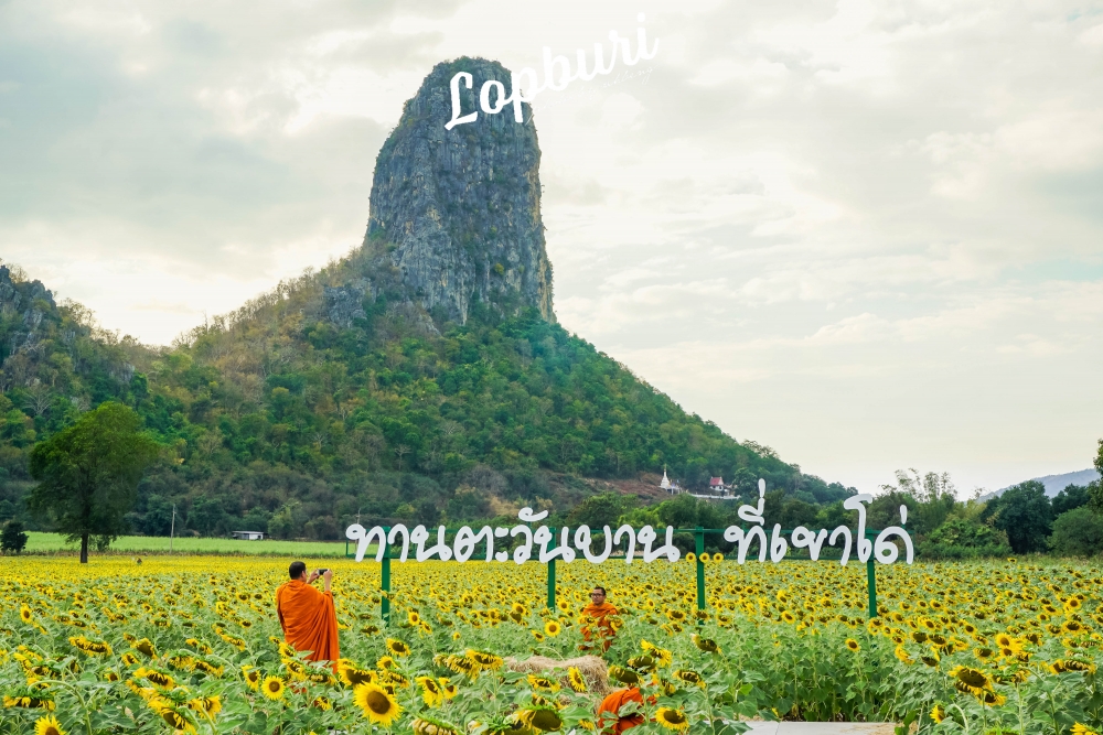 When you see there are monkeys wandering on the street, you are ready to explore this monkey kingdom. It was around lunch time when we reached here. Our first stop was Noom Guesthouse. This is an ideal place where you can have lunch and book for the sunflower field tour. The sunflowers only bloom from December to January. The tour cost us 300 Baht each. Besides sunflower field tour, they also organize trip to Pasak Jolasid Dam, Peacock Temple and Bat Cave. Since the tour commenced at 2.30pm, we still had some time to walk around after lunch. We ordered green curry chicken, Thai shrimp omelette, fried rice, white rice and Thai milk tea. Overall, the food taste great and worth the money!