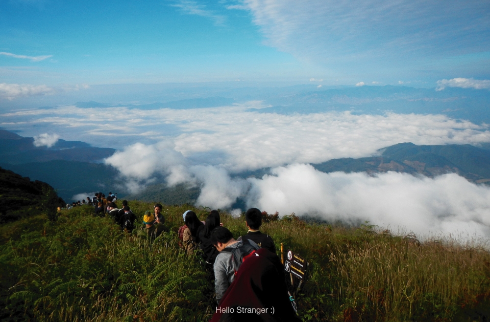 ทางเดินก่อนถึงจุดชมวิว คล้ายกับทุ่งหญ้าสีทอง เมื่อมีแสงพระอาทิตย์ตกกระทบบนยอดหญ้า