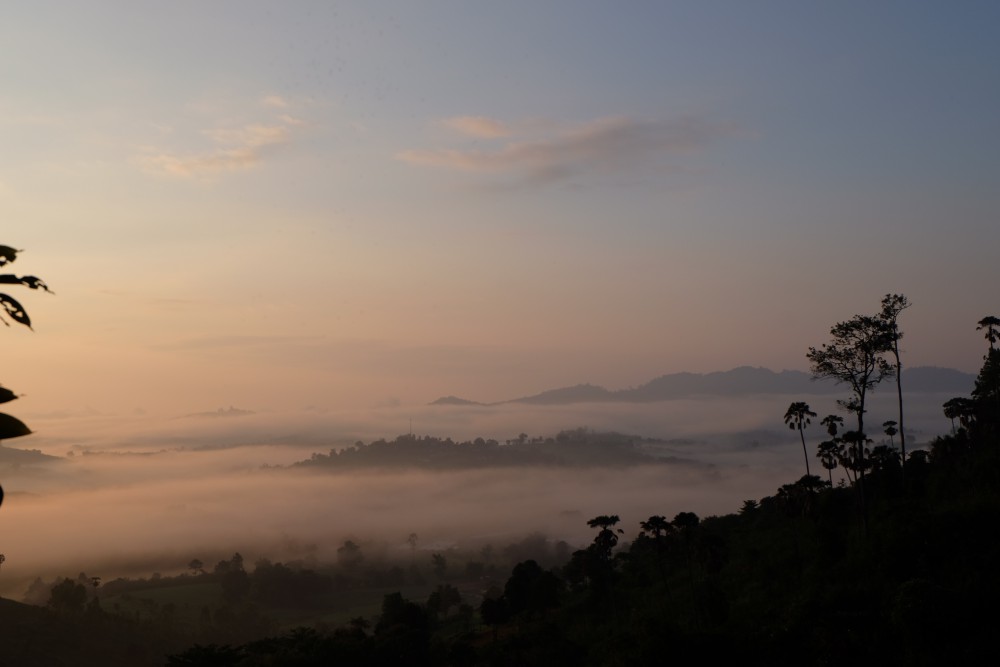 เราออกจากที่พักตั้งแต่ฟ้าสาง เห็นแสงอ่อนๆ ของพระอาทิตย์ที่ค่อยๆขึ้นมาจากของฟ้า