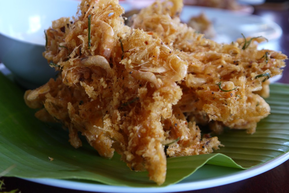 เมนูนี้กุ้งทอด คือตอนแรกเราคิดว่าเป็นกุ้งตัวใหญ่แบบทอดมันกุ้ง แต่พอมาแบบนี้ก็กินสิ่ครับ รอไรอยู่ล่ะ เพราะมันอร่อย กรอบ นี่คงเป็นที่มาของการลองผิดลองถูก 555+