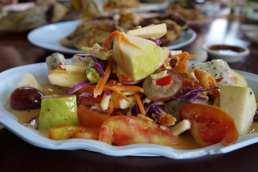 ตำผลไม้ อันนี้อร่อยจริง ผลไม้หวานกรอบ คลุกเคล้าเข้ากันกับน้ำยำ พูดละอยากกินอีก