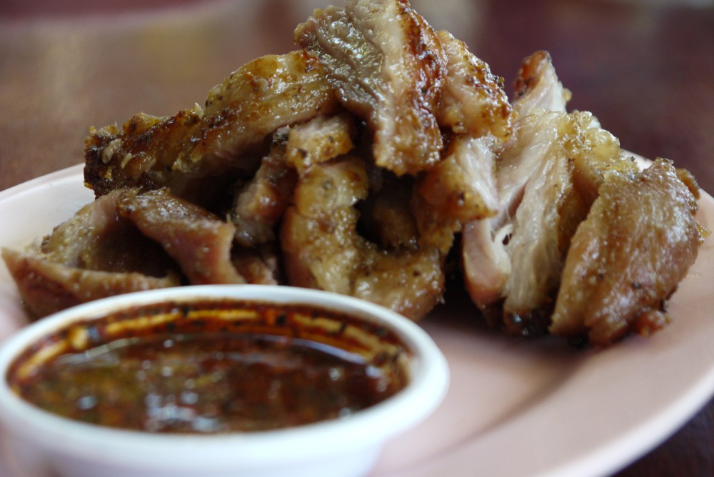 อันนี้เป็นคอหมูย่าง ร้อนๆ เนื้อนุ่ม มาพร้อมกับน้ำจิ้มรสเด็ด