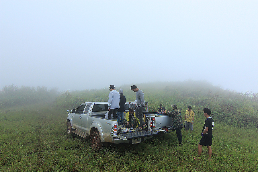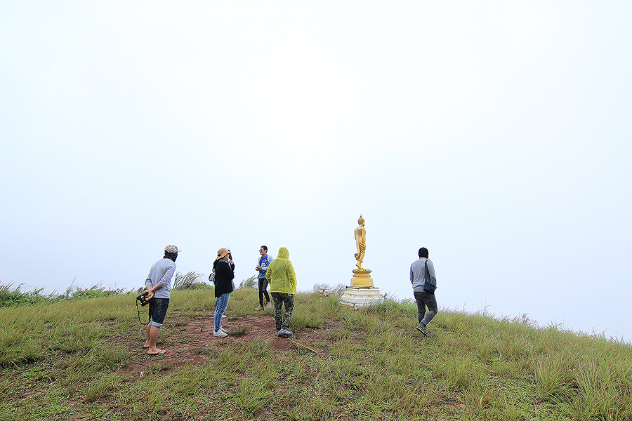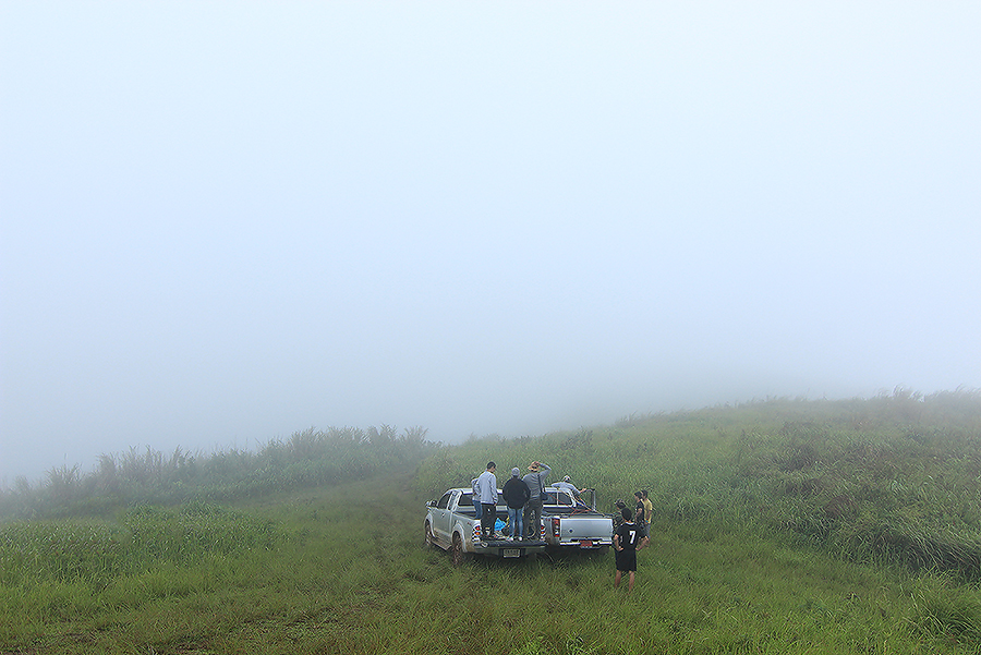 สภาพอากาศเปิดเป็นบางช่วง แต่บนยอดดอยอากาศปิด หมอกฟุ้งขาวโพลน มองไม่เห็นอะไรเลย
