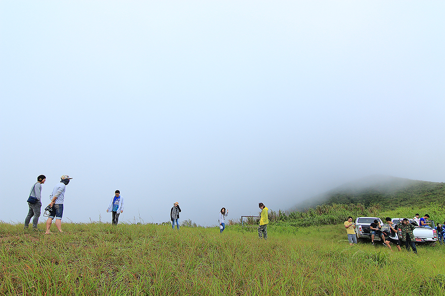 ก็จะมีหมอกลอยขาวฟุ้งจนมองอะไรแทบไม่เห็น แต่บางครั้งฟ้าก็เปิดให้ได้เห็นทะเลหมอกสลับกับเนินเขาและทิวหญ้า