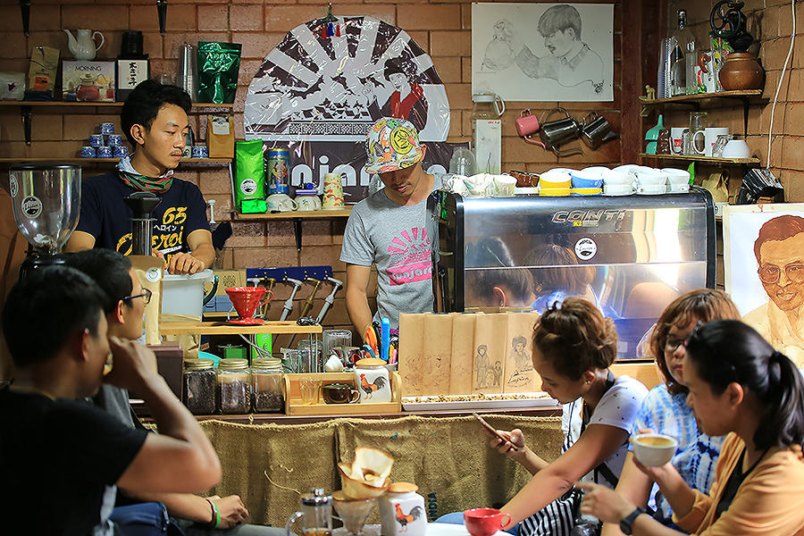 - ก่อนขึ้นดอยฯ จะมีร้านกาแฟเล็กๆ ไว้ต้อนรับนักท่องเที่ยวที่แวะมาเยี่ยมเยียนสวนยาหลวง ผลิตภัณฑ์ของร้านก็ใช้วัตถุดิบในพื้นที่นี่แหล่ะครับ คอกาแฟไม่ควรพลาด