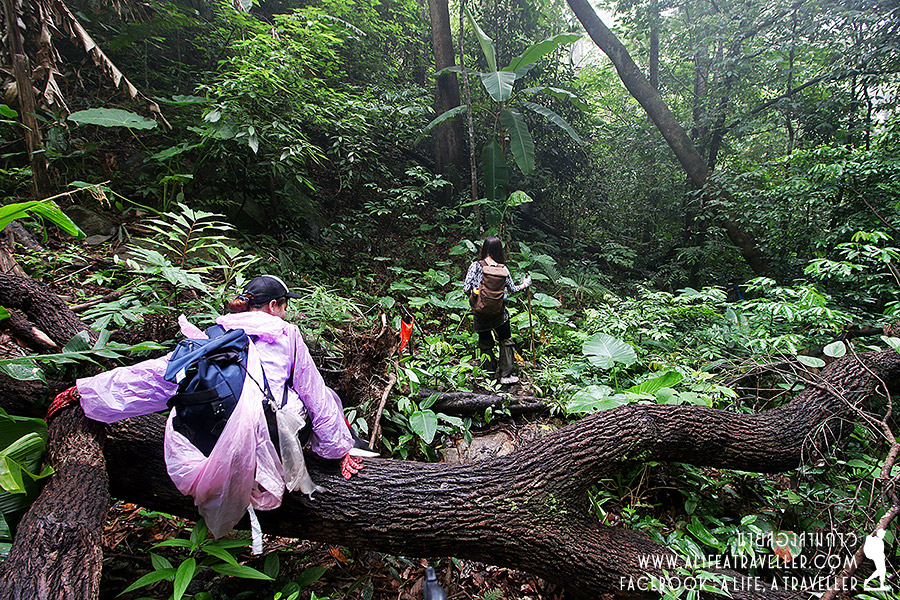 ขึ้นจากเล่นน้ำตกยังไม่ทันไรฟ้าก็ร้องโครมคราม พวกเรารีบเก็บของเตรียมเดินทางต่อแต่ไม่ทันกาล ฝนเทลงมาตูมใหญ่ เจ้าหน้าที่ร้องบอกให้รีบเดินเพราะสถานการณ์ฝนตอนนี้มีความเสี่ยงต่อน้ำป่า