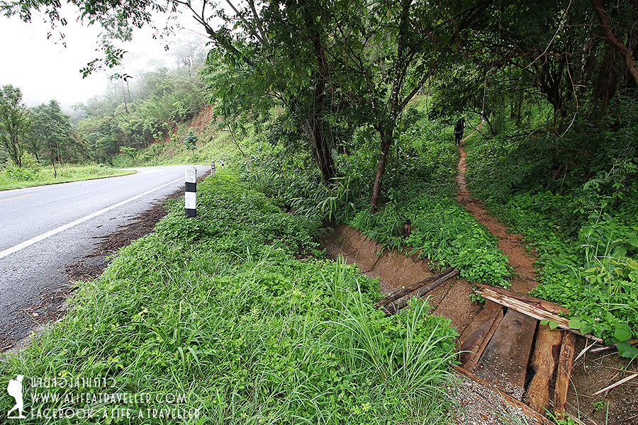 จุดเริ่มต้นขากลับคือจากพระพุทธรูปองค์ใหญ่เดินลงตามไหล่เขา หญ้าคาริมทางค่อนข้างสูง แนะนำให้สวมถึงมือกันโดนบาดนะครับ แม้ฝนจะตกพรำๆ แต่วิวสองข้างทางสวยมากจนผมอดใจไม่ไหวต้องเสี่ยงหยิบกล้องมาแช้ะภาพไว้