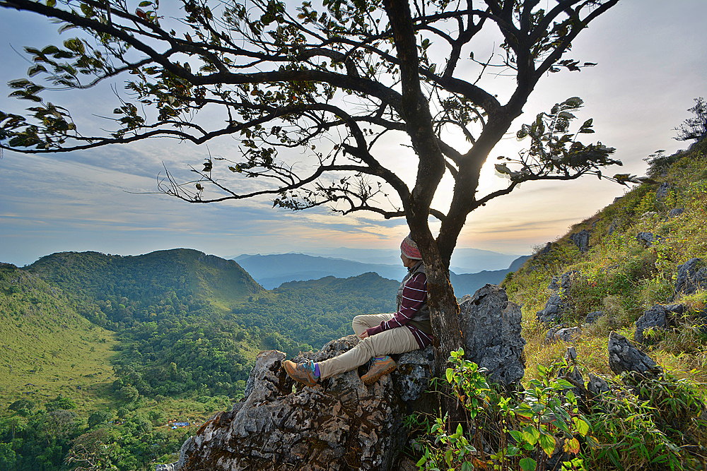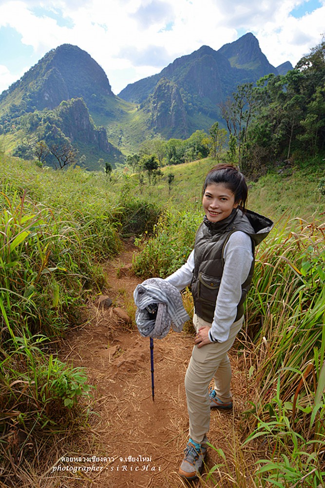 กลัวไม่ทันแสงเย็น ผมกับแฟนรีบขนอุปกรณ์ถ่ายภาพขึ้นยอดดอยหลวงทันที ทางชันมากครับ รีบเดินมาก รับสารภาพตามตรงเหนื่อยกว่าตอนเดินทางเด่นหญ้าขัดอีก อาจเป็นเพราะต้องเร่งเดินทำเวลา