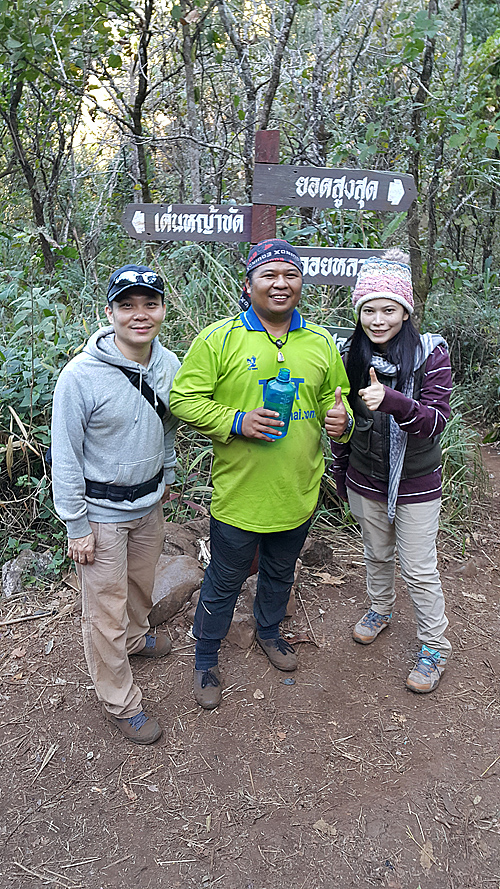 ตอนกลางคืน-เช้ามืด อากาศข้างบนหนาวมากครับ อุณหภูมิน่าจะใกล้ติดลบ ขากลับผมได้พบกับ แม่คะนิ้ง เป็นบุญตา