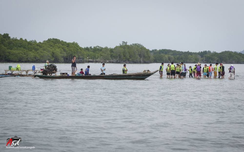 บางโฮมสเตย์ไกลหน่อยลากไม่ไหวก็มาเรือหางยาว แต่ทุกโฮมสเตย์ก็มุ่งหน้ามาที่ดอนทราย หรือทะเลแหวก วันนี้น้ำเยอะ ไม่ถึงกับแห้งให้เห็นดอนทราย แต่ก็ยืนได้