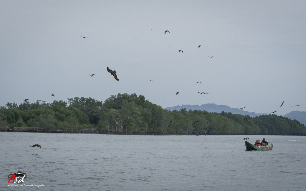 ประมาณสี่โมงเย็น คาราวานก็ออกจากที่พักด้วยแพลาก ชาวบ้านเรียกแพเปียก เพื่อชมทะเลแหวก และเหยี่ยวแดง
