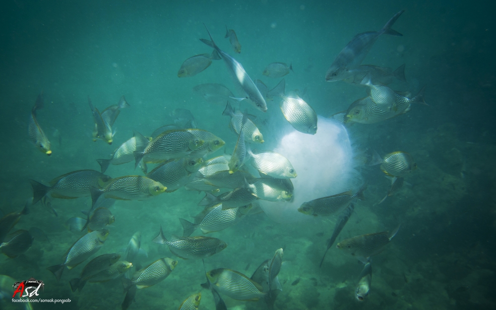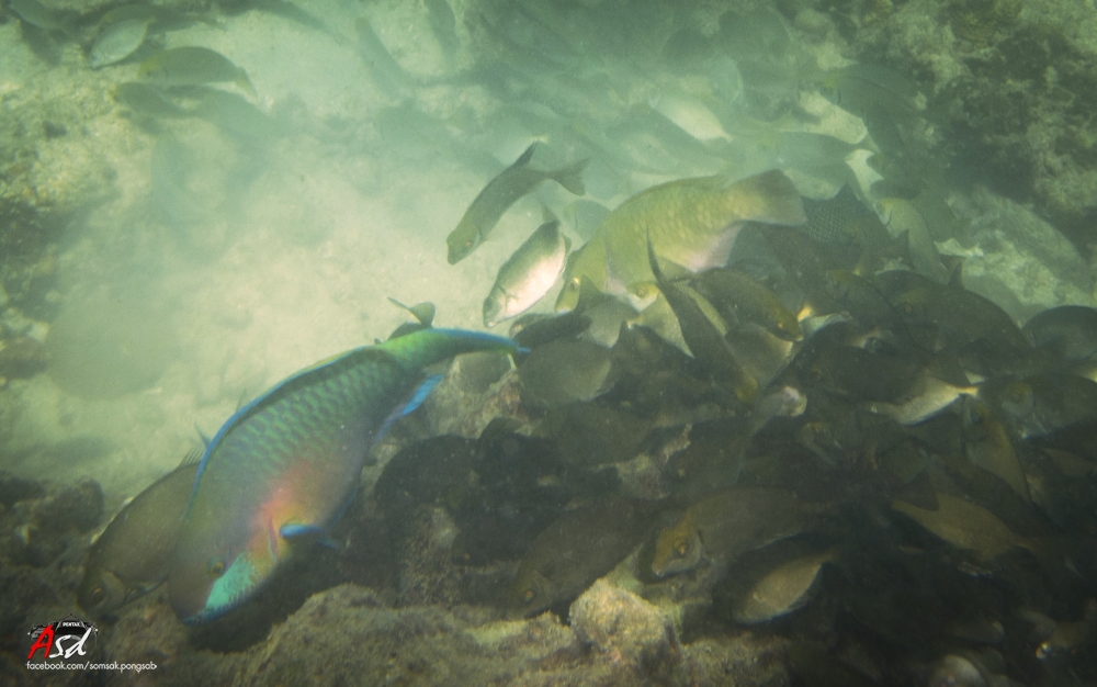 เจอฝูงปลาสลิดหินกำลังรุมกินแมงกระพรุน