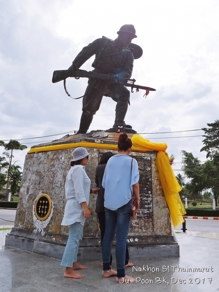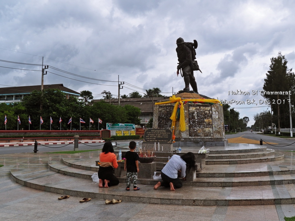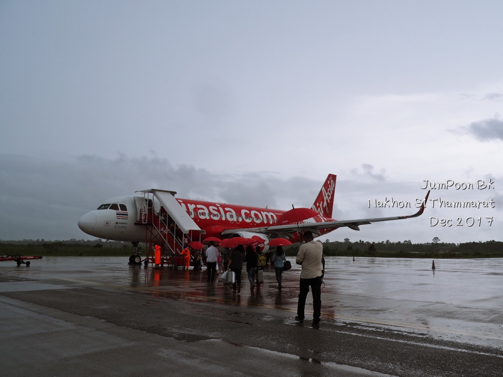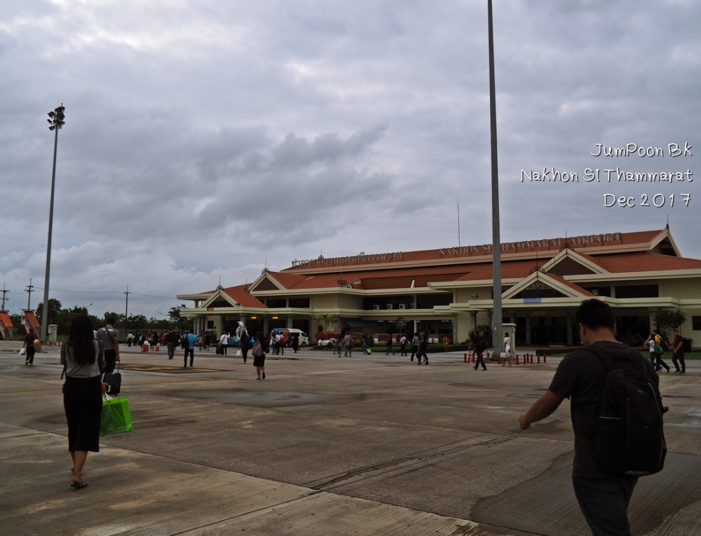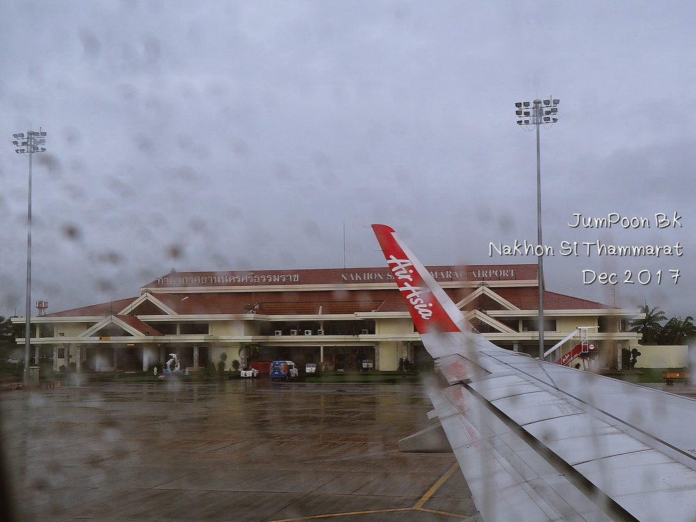 ทริปนี้เกิดจากทริปหลวงพระบาง คุณพี่เพื่อนร่วมทริปในครั้งนั้นชวนไปเที่ยวบ้านเก่าที่นครศรีธรรมราช เรามันคนใจง่ายเลยตอบตกลง พร้อมจองตั๋วเครื่องบินเลย มีเรื่องตื่นเต้นก่อนบินไปเมืองคอน เราดูเวลาเที่ยวบินสับสนกับอีกทริป เข้าใจไปเองว่า เที่ยวบินไปนครศรีธรรมราช จะไปช้ากว่านั้น คือไปช้ากว่าที่ต้องบินไป 1 ชั่วโมง จากศรีราชามาถึง รพ.สินแพทย์ เปิดดูข้อมูลเที่ยวบินที่เราได้เช็คอินมาเรียบร้อย ได้ส่งเสียงสั่นรถตู้ว่า “ชิบหายแล้ว” เหลืออีก 1 ชั่วโมงต้องบิน เลยบอกพี่คนขับรถตู้ให้จอดตรงที่มีวินมอไซค์แถวซอยนวลจันทร์ เป็นสก๊อยเกาะพี่วินแน่น “ดอนเมืองพี่ เร็วที่สุด” สภาพการจราจรเวลานั้นบอกเลยว่าเกือบวิกฤต พี่วินใช้เวลาราว 25 นาที ส่งเราตรงสะพานลอยหน้าสถานีรถไฟดอนเมือง จ่ายค่าเสียหายไป 250 บาท วิ่งขึ้นสะพานลอยผ่านอาคาร 1 วิ่งต่อไปไม่คิดชีวิตไปยังอาคาร 2 เนื่องจากเวลาจวนเจียนทางพนักงานแอร์เอเซียให้ไปออกตั๋วที่เคาน์เตอร์ A เรามีเพื่อนร่วมเที่ยวบิน ยืนยิ้มอยู่ตรงเคาน์เตอร์ด้วย บอกเราว่า “ใจเย็นๆ หายใจลึกๆ ทันๆ” เราไปตรวจตามขั้นตอนก่อนขึ้นบิน ไปที่ Gate 45 กำลังต่อแถวตรวจตั๋วขึ้นเครื่องกันอยู่เลย ทันพอดี แบบใจหายใจคว่ำ