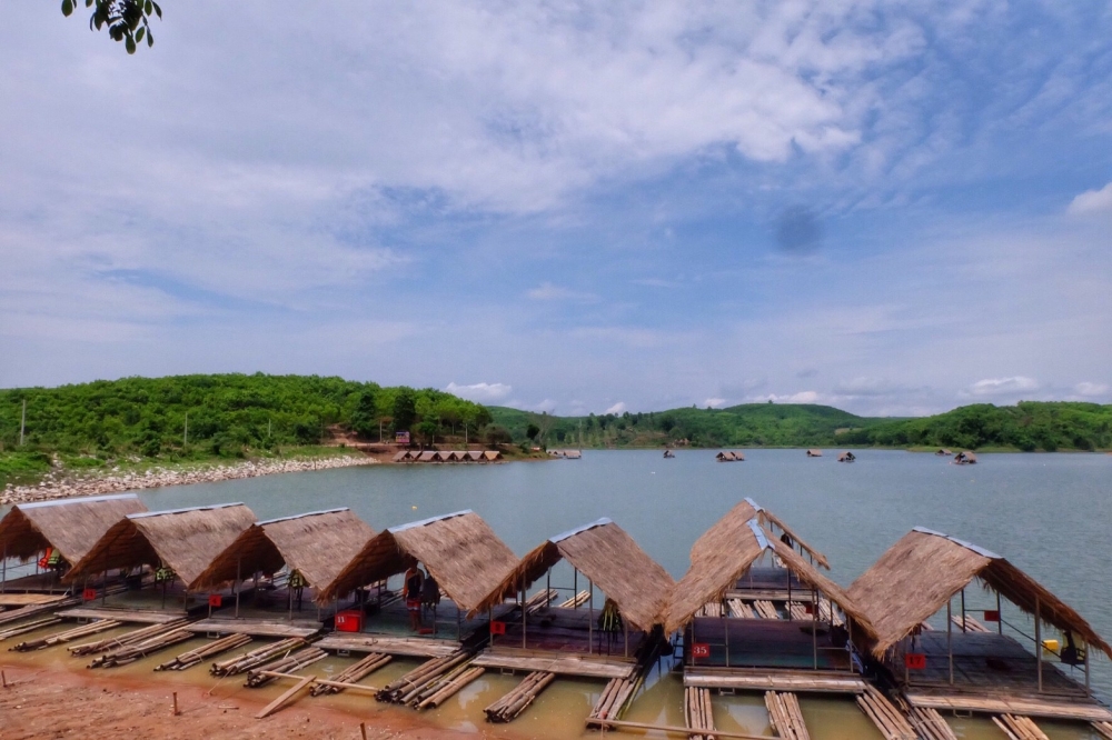 ซึ่งที่นี่เกิดขึ้นภายใต้ความร่วมมือของกลุ่มชาวบ้านที่ช่วยกันพัฒนาพื้นที่อ่างเก็บน้ำห้วยซำรู้ ให้เป็นแหล่งท่องเที่ยวทางธรรมชาติ ส่งเสริมรายได้สู่ท้องถิ่น โดยเปิดให้นักท่องเที่ยวมาล่องแพ พร้อมทานอาหาร โดยใช้เรือหางยาวลากแพไปผูกไว้กับทุ่นบริเวณกลางอ่าง เพื่อสัมผัสกับธรรมชาติอย่างใกล้ชิด ซึ่งในแพจะมีอุปกรณ์ประเภทเสื้อชูชีพ และห่วงยาง ไว้เพื่อความปลอดภัย โดยจะเน้นย้ำนักท่องเที่ยวให้เซฟตี้ตัวเองหากจะลงเล่นน้ำ โดยจะมีเรือหางยาวคอยบริการส่งอาหาร หรือมีนักท่องเที่ยวต้องการเข้าห้องน้ำ ก็สามารถโทรเรียกเรือหางยาวมารับได้ตลอดเวลา โดยไม่เสียค่าบริการเพิ่ม