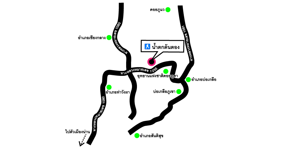 แบกกระเป๋ามาเที่ยวไกลถึงอุทยานแห่งชาติดอยภูคา ทั้งที จะให้มัวแต่นอนกินลม ชมดาวอยู่แต่ในบ้านพักอุทยานฯ ก็ใช่เรื่อง เพราะบริเวณใกล้ๆ ที่ทำการอุทยานฯ ยังมีแหล่งท่องเที่ยวที่น่าสนใจอีกมากรอให้เราไปเยี่ยมชมอยู่ นอกจากการตะลุยเส้นทางศึกษาธรรมชาติตามหาดอกชมพูภูคาแล้ว ยังมีน้ำตกสวยๆ อย่าง “น้ำตกต้นตอง” ที่เราหมายมั่นตั้งใจจะไปชมความสวยงามด้วยตาตัวเองซักครั้ง