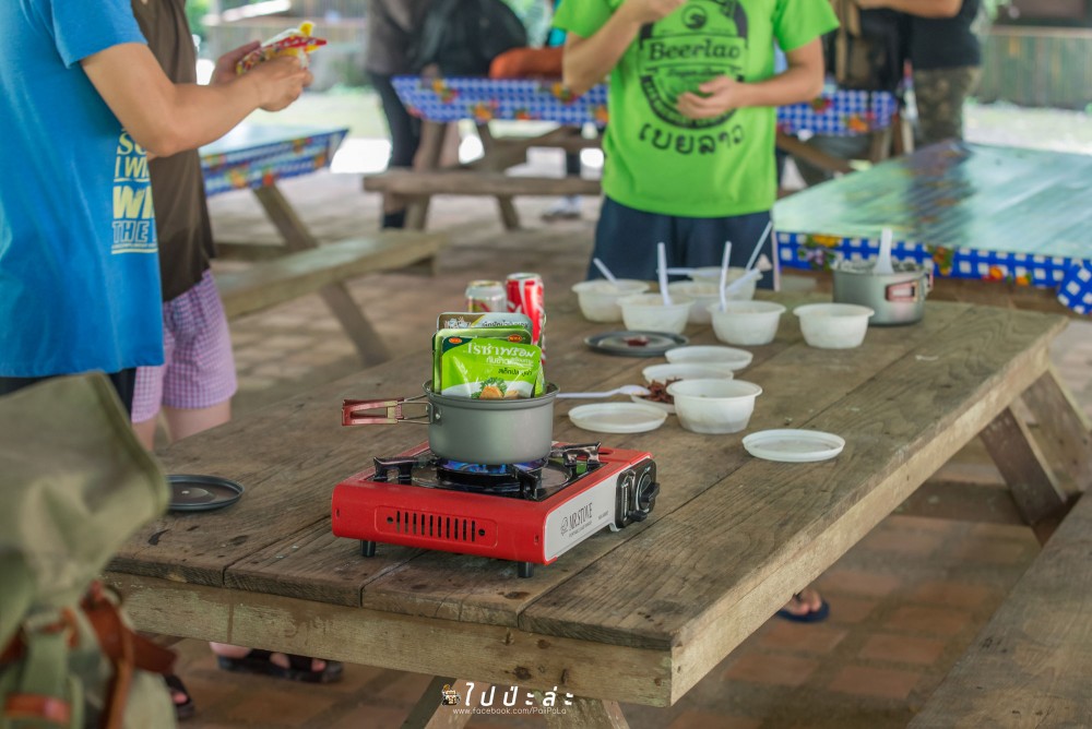 อุปกรณ์ดำรงชีพ เครื่องครัว อาหาร (จริง ๆ จุดกางเตนท์มีน้ำดื่มขาย มีครัวขายอาหารครับ ถ้าเหมาก็ 3 มื้อ 250 บาทครับ)