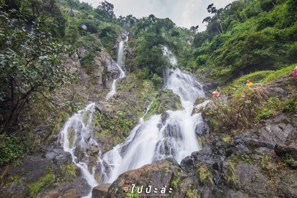 ช่วงสุดท้ายก่อนถึงจุดหมายทางชันมากครับ แต่ก็มีเชือกให้เราได้จับประคองตัวเดินขึ้นครับ และแล้วหลังจากที่เราเดินมา 3 ชั่วโมงกว่าก็มาถึงจนได้ครับ น้ำตกสูงใหญ่มากครับ สูงกว่า 300 เมตร เราเริ่มออกเดินประมาณ 9.00 น. ถึงน้ำตกก็จะ 12.00 น. ประมาณนี้ครับ ก็ได้เวลาพักกินมื้อเที่ยงที่เราห่อกันมาครับ หลังจากนั้นก็เก็บภาพน้ำตก หรือใครจะเล่นน้ำก็สามารถทำได้ครับ การเดินไปเดินมาบริเวณน้ำตกต้องระวังลื่นนะครับ เพราะละอองน้ำจากน้ำตกสูงทำให้กินทุกก้อนเปียกและมีตะไคร่เกาะเพิ่มความลื่น อีกสิ่งที่ต้องระวังก็คือผึ้งครับ ผึ้งจะมาตอมตามตัวเราเข้าใจว่ามากินเหงื่อเราครับอย่าเผลอไปปัดไปตบล่ะครับ มือบวมได้ง่าย ๆ เลย