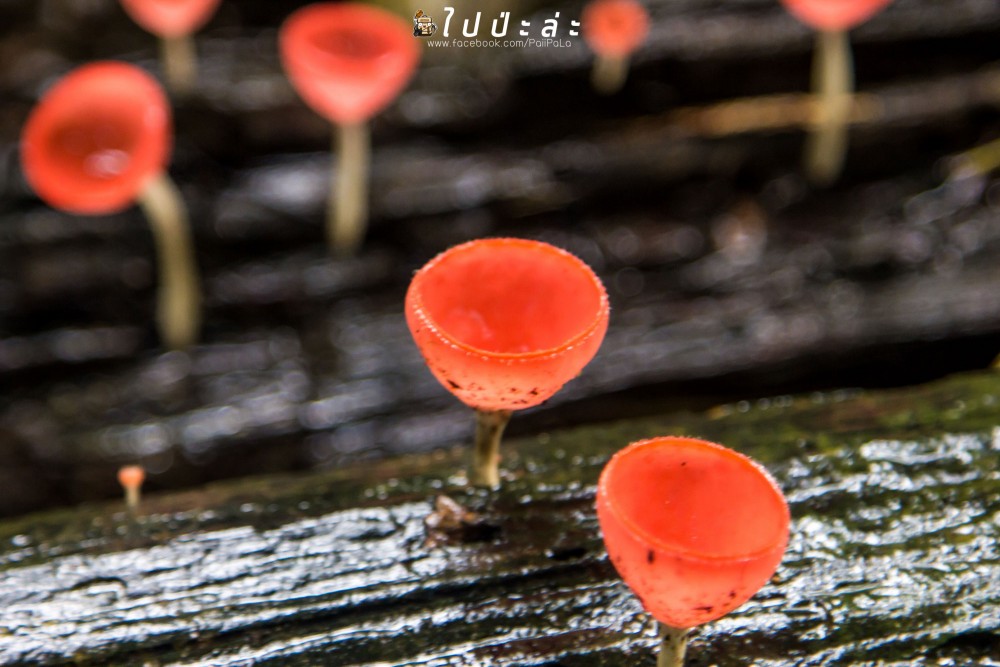 และแล้ว !!! เราก็มาเจอกับกลุ่มเห็ดแชมเปญที่เราตามหาครับ มีขึ้นอยู่เยอะแยะ ไปหมดเลยครับมีทั้สีส้ม และสีแดง สวยงามรูปทรงเป็นแก้วแชมเปญสมชื่อเลยครับ