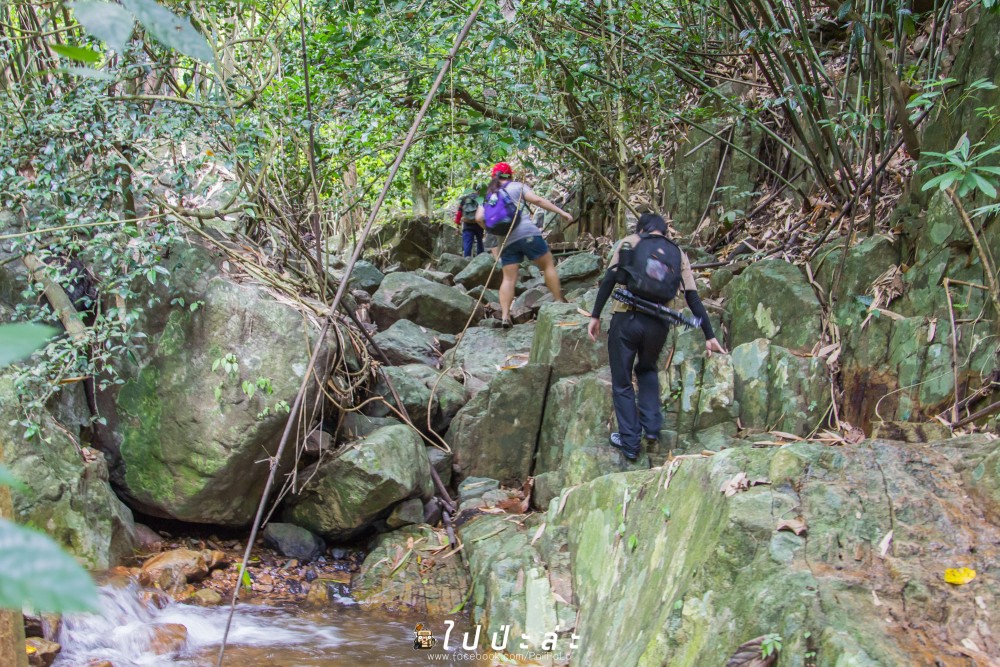 - รองเท้าผ้าใบ หรือรัดส้น เอาแบบลุย ๆ หน่อยเพราะเราต้องเดินป่า ปีนป่าย ลุยลำธาร ข้ามน้ำตก