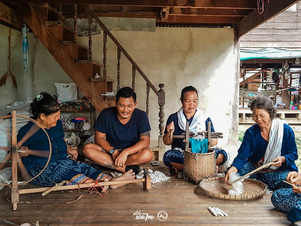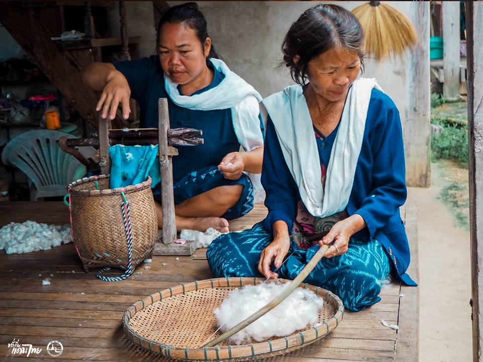 แม่ ๆ ที่นี่เค้าทั้งปั่นฝ้ายเอง ย้อม ทอ และตัดเย็บเสร็จสรรพเลยนะคะ